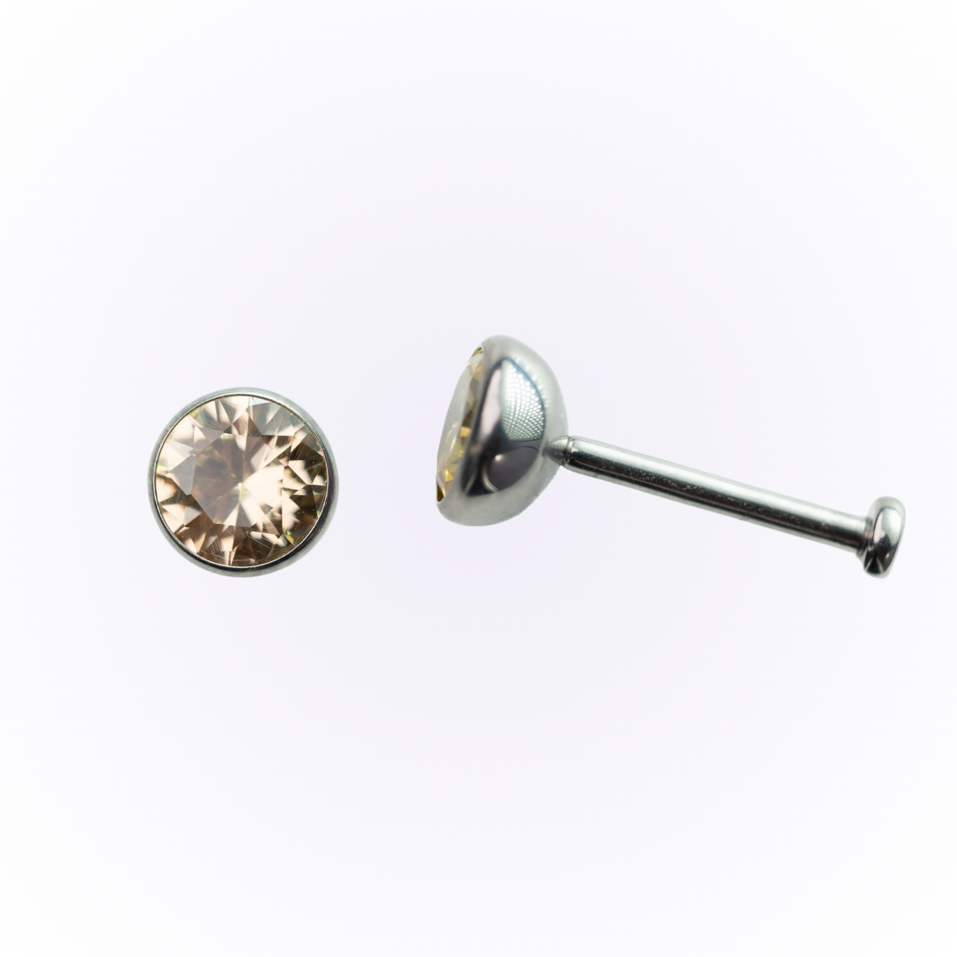 Pendientes de circonita cúbica color champán con engaste de bisel y parte trasera plana sin rosca