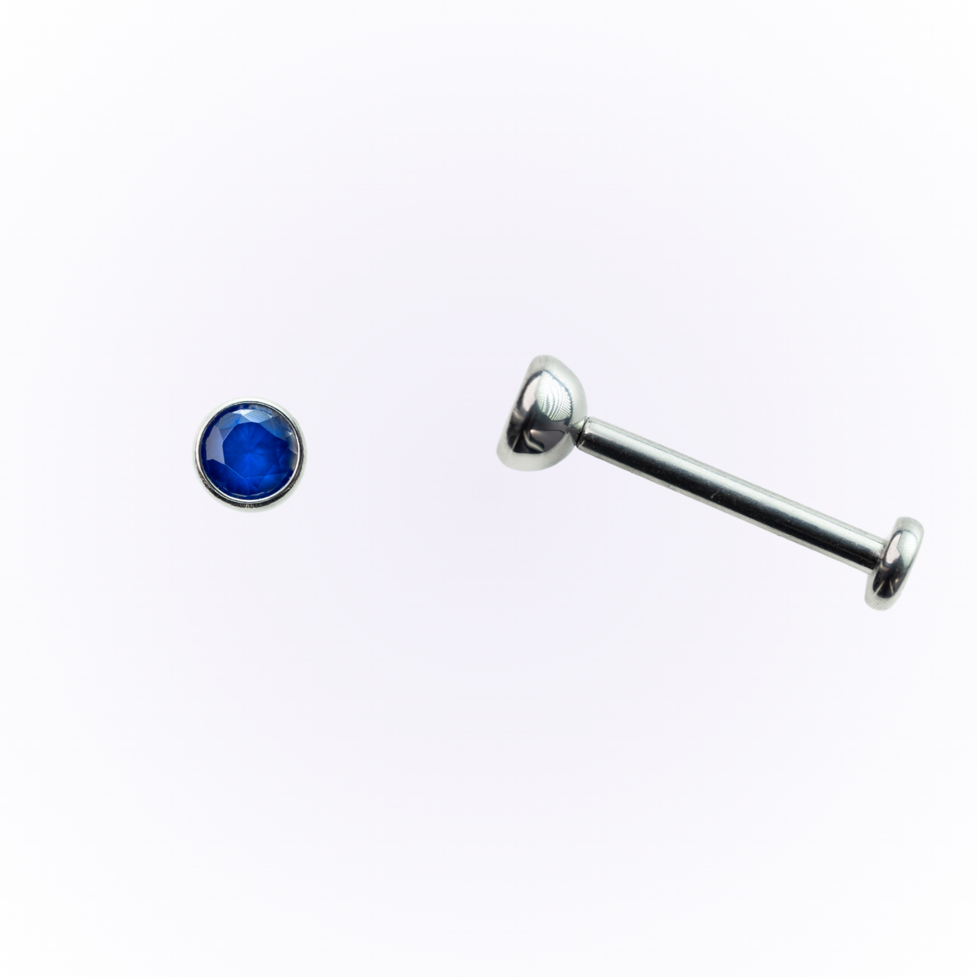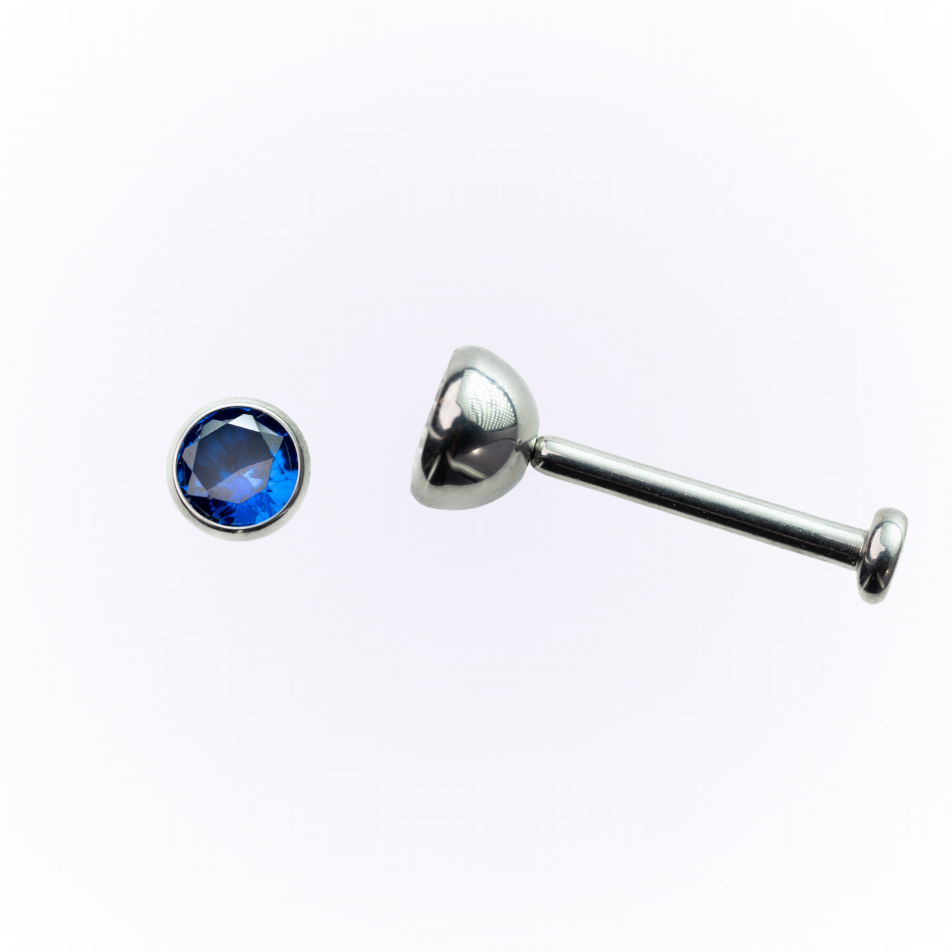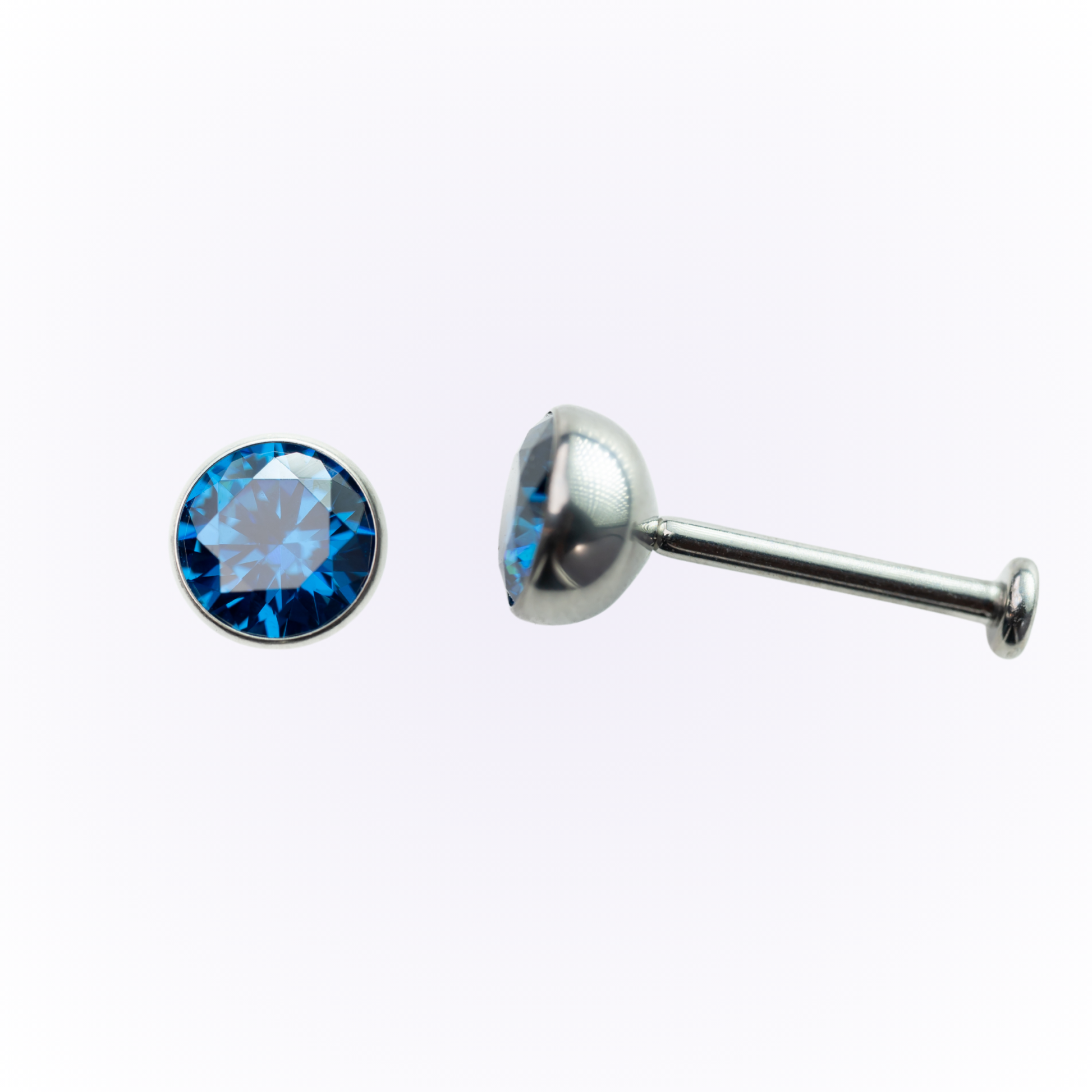 Pendientes de botón sin rosca con circonita cúbica azul engastada en bisel y con parte trasera plana.