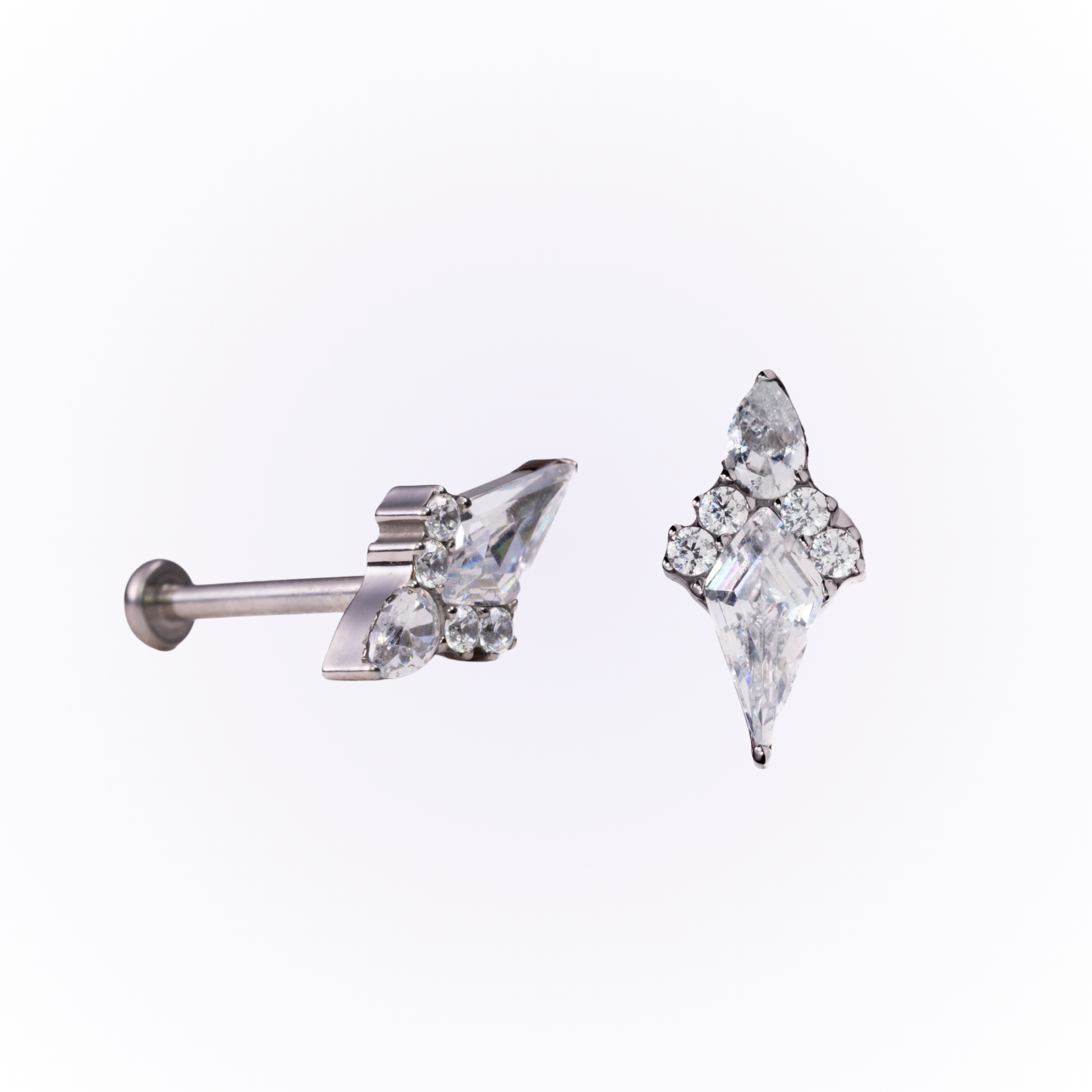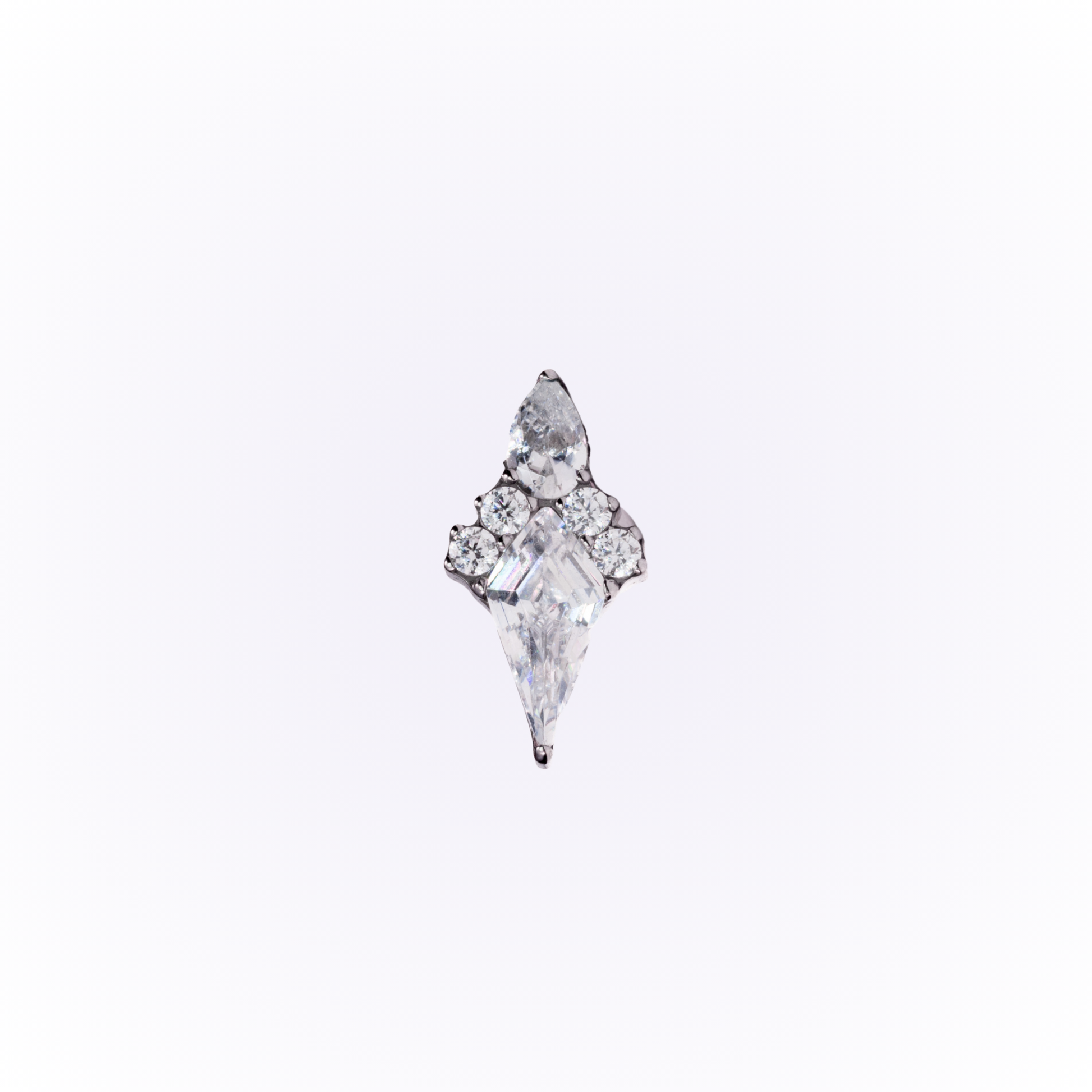 Luce un look impactante con "Pierce", que presenta una llamativa circonita cúbica central con corte de cometa, rodeada por cuatro circonitas cúbicas de corte circular y una circonita cúbica con corte de pera en la parte superior. Este diseño cautivador, elaborado en titanio resistente, aporta un toque único y radiante a cualquier piercing.