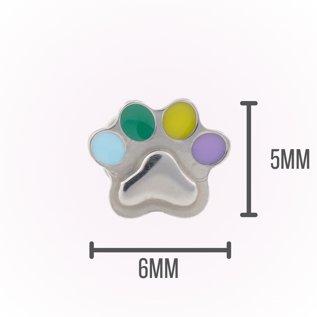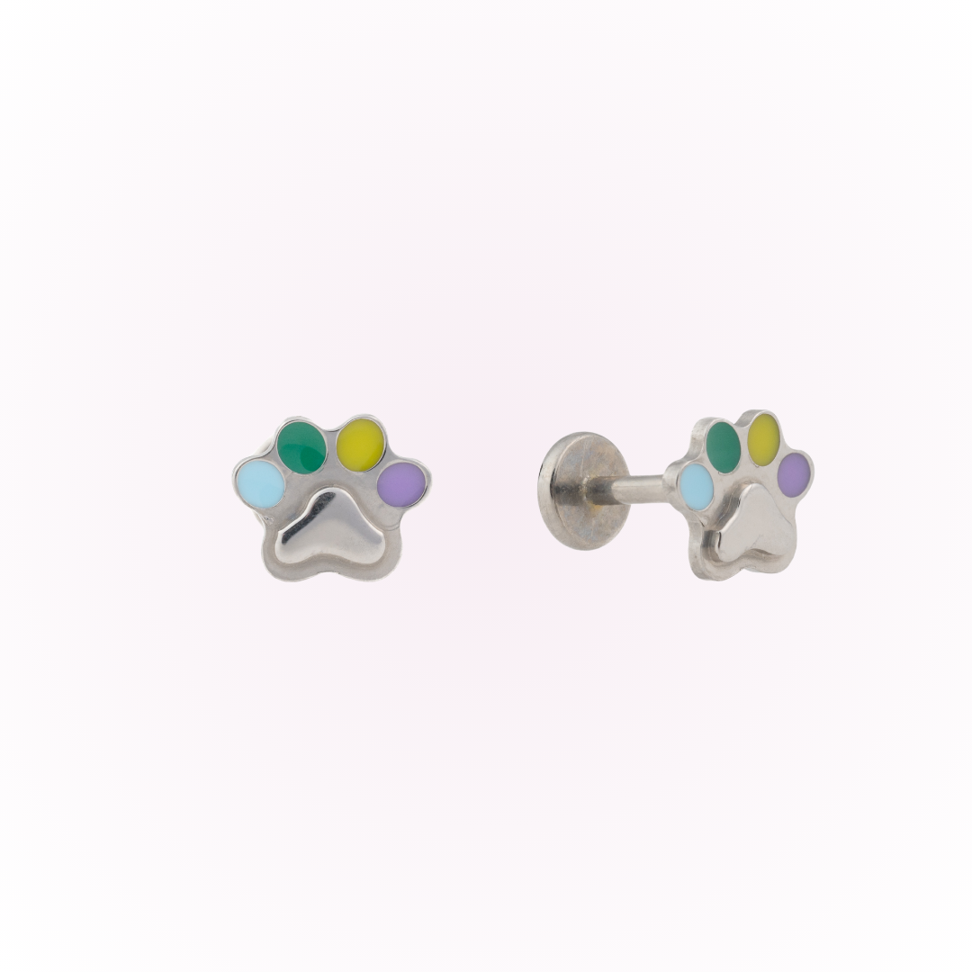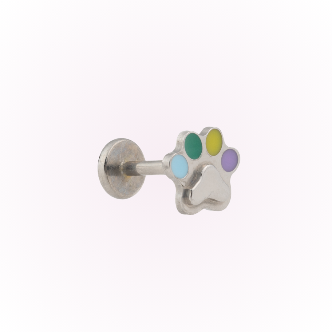 Diseño de huella con detalles de esmalte verde, azul, morado y amarillo