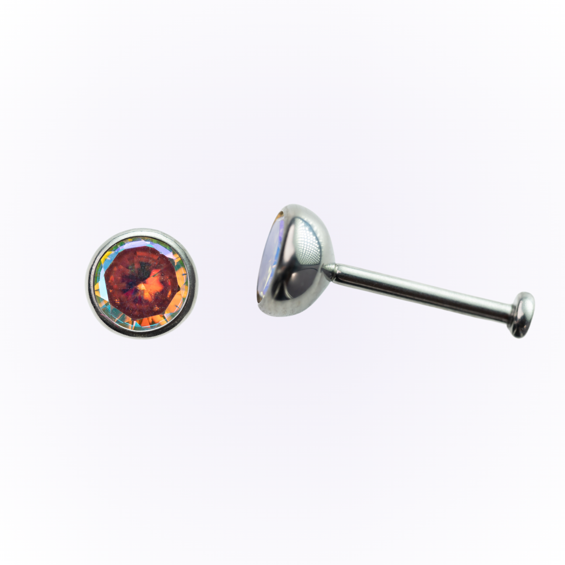 Broche con engaste de bisel, cristal AB , circonita cúbica, sin rosca, parte trasera plana.