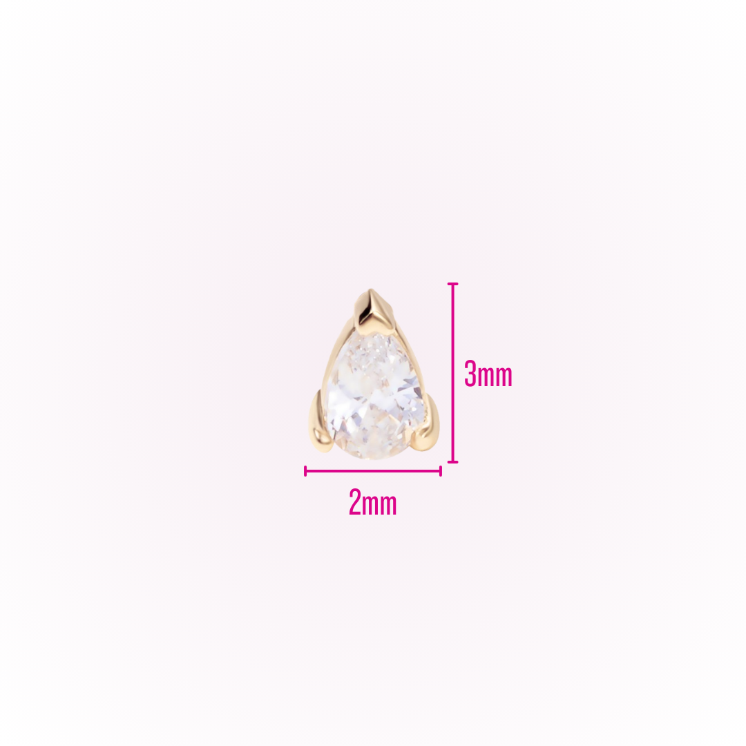 - Circonita cúbica en forma de lágrima de 3 mm engastada en garra