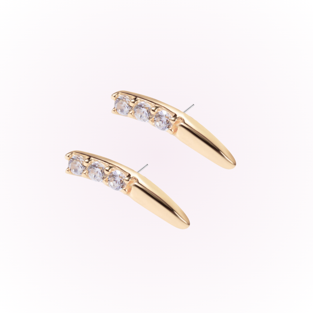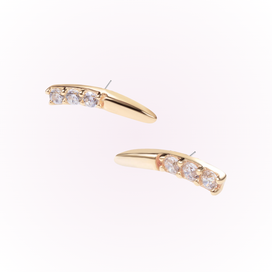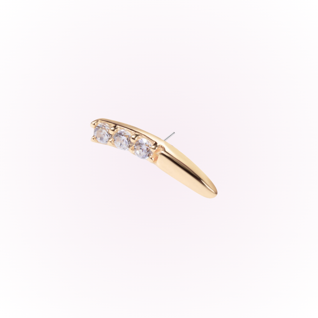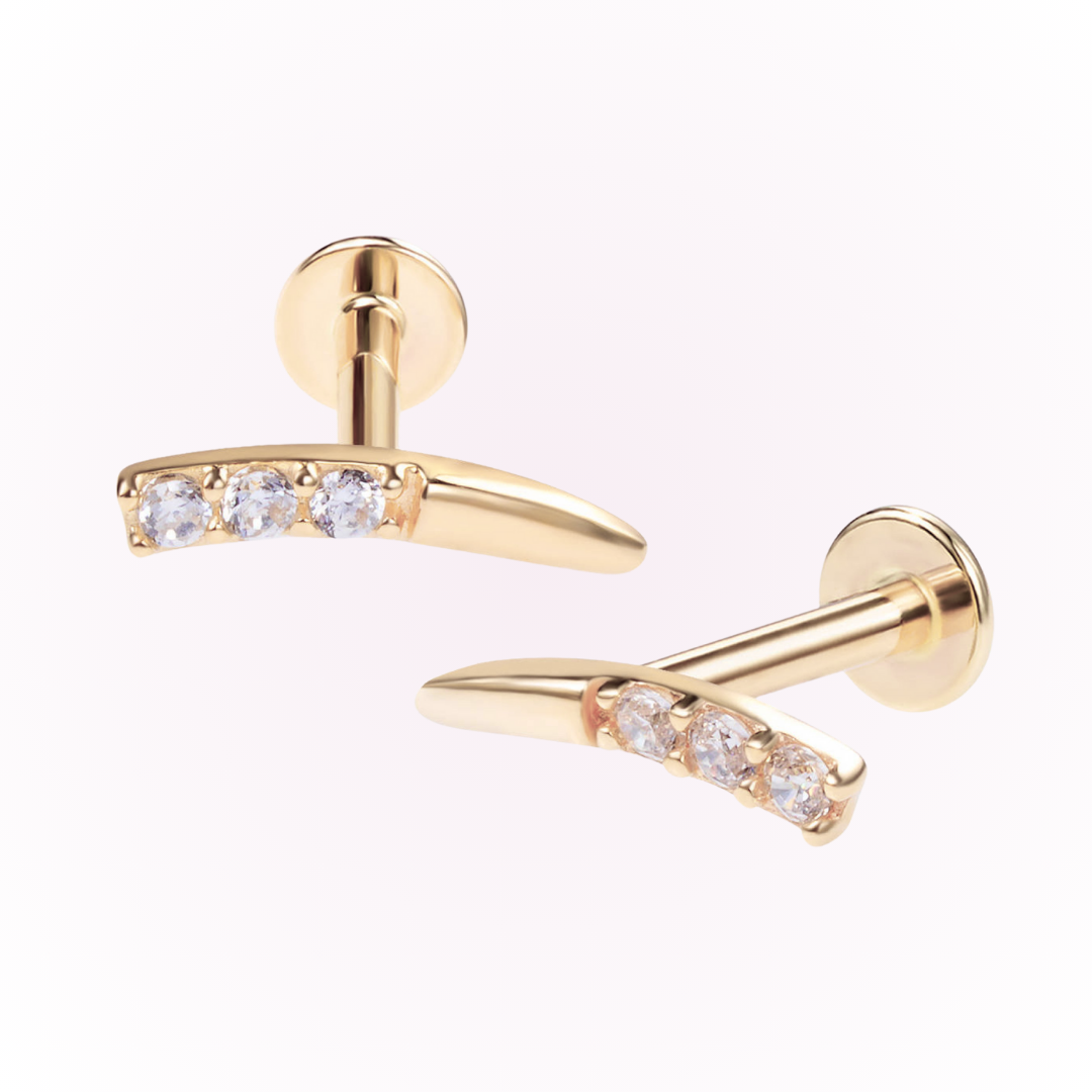 Saca a relucir tu lado más atrevido con "Wild", un llamativo pendiente de oro de 14k con forma de cuerno y barra curva, adornado con tres brillantes circonitas cúbicas. Disponible para la oreja izquierda o derecha, esta pieza única le da un toque moderno y elegante a tu piercing.