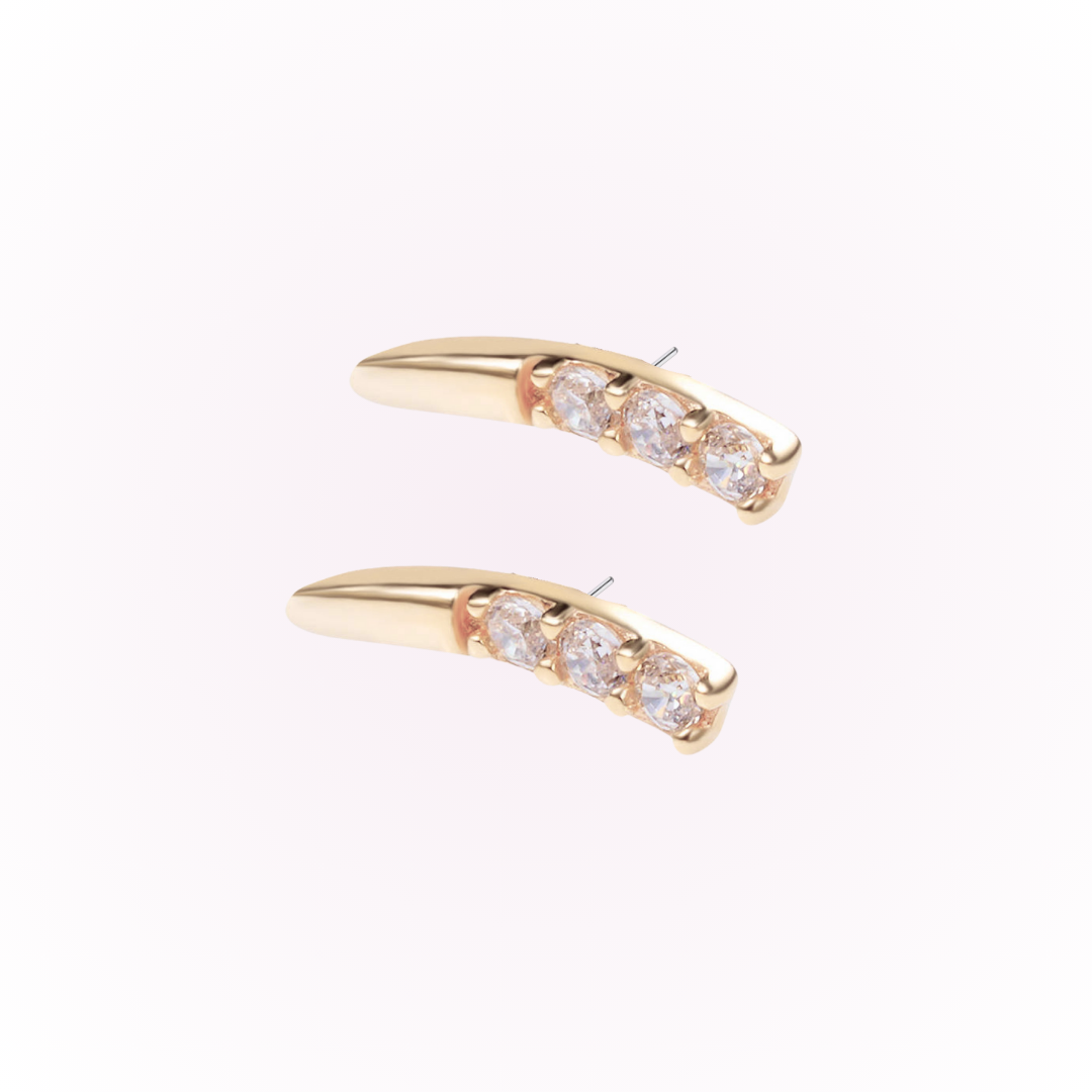 Pendientes de botón con forma de cuerno curvo "Salvaje" de oro de 14k con detalles de circonitas cúbicas