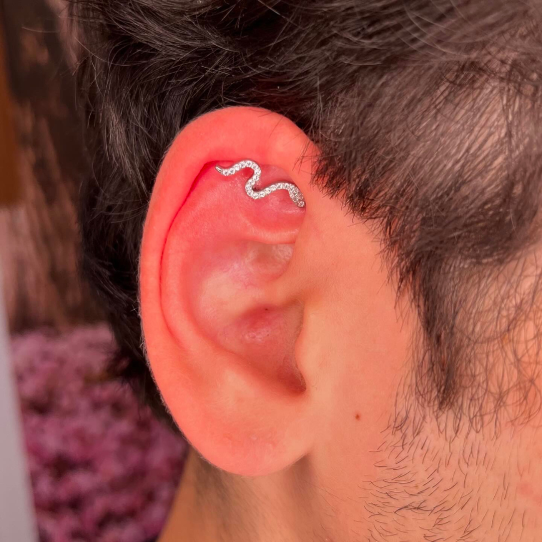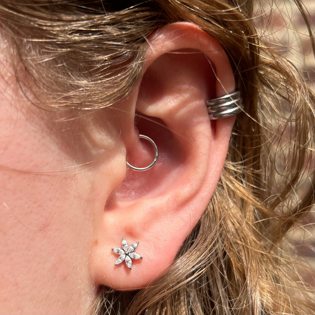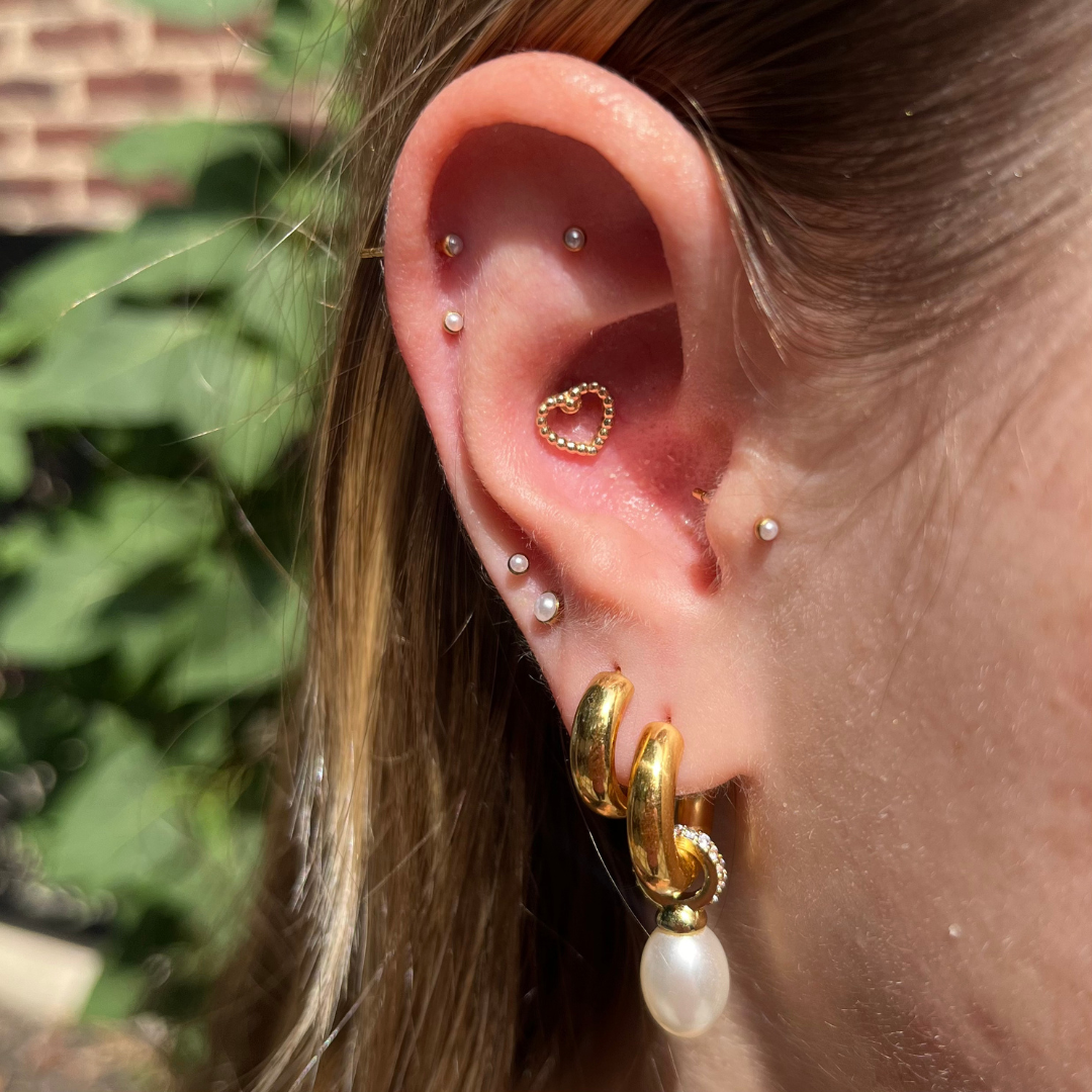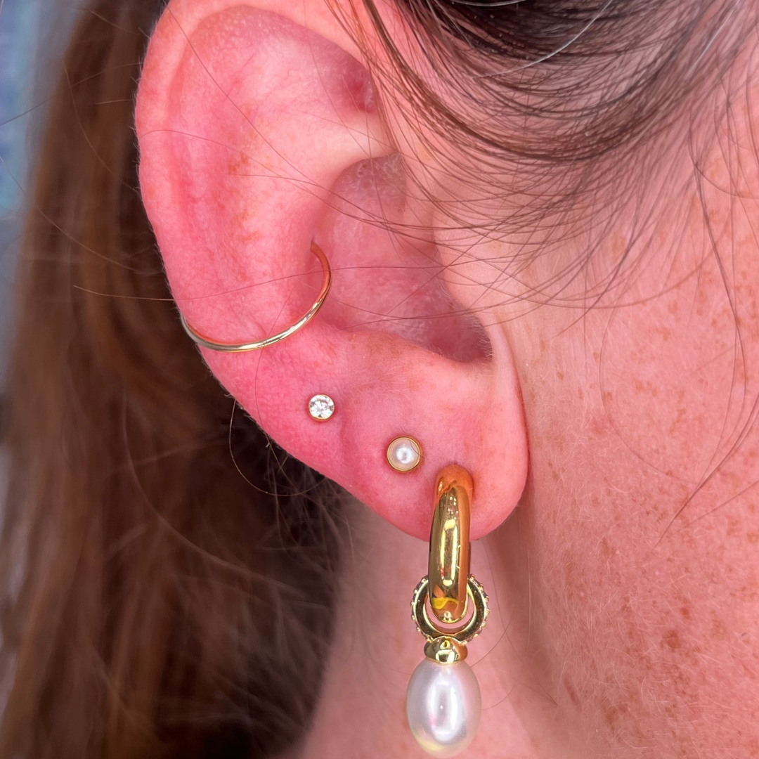 Check out some of our curated ear styling examples below! These photos feature both our team members and amazing customers who let us design their ear setups. Most of the earrings shown are available for purchase right here at our studio!
