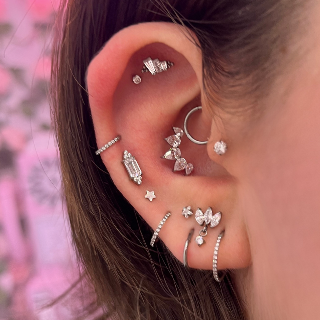 Scroll down to explore all of our titanium earring styles available! Prices listed include the jewelry and the piercing together before tax.