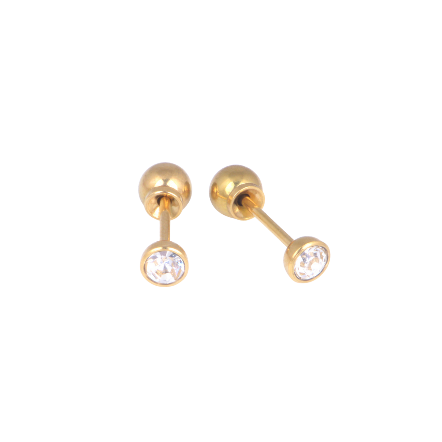4mm Bezel Set Clear Cubic Zirconia Yellow Gold Stud
