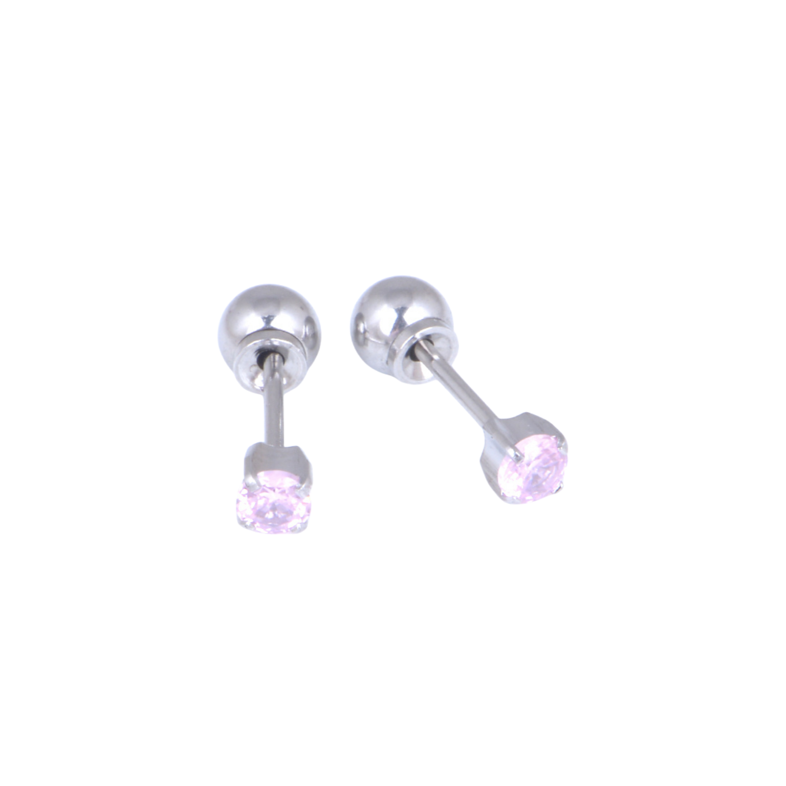 3mm Prong Set Pink Cubic Zirconia White Gold Stud