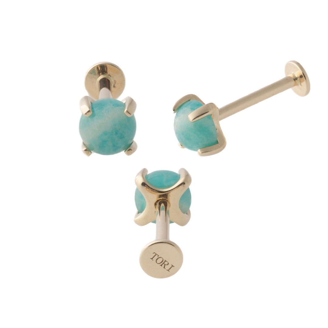 "Amazonite" 14k Gold 18G Threadless Flatback with 4mm Amazonite Stone