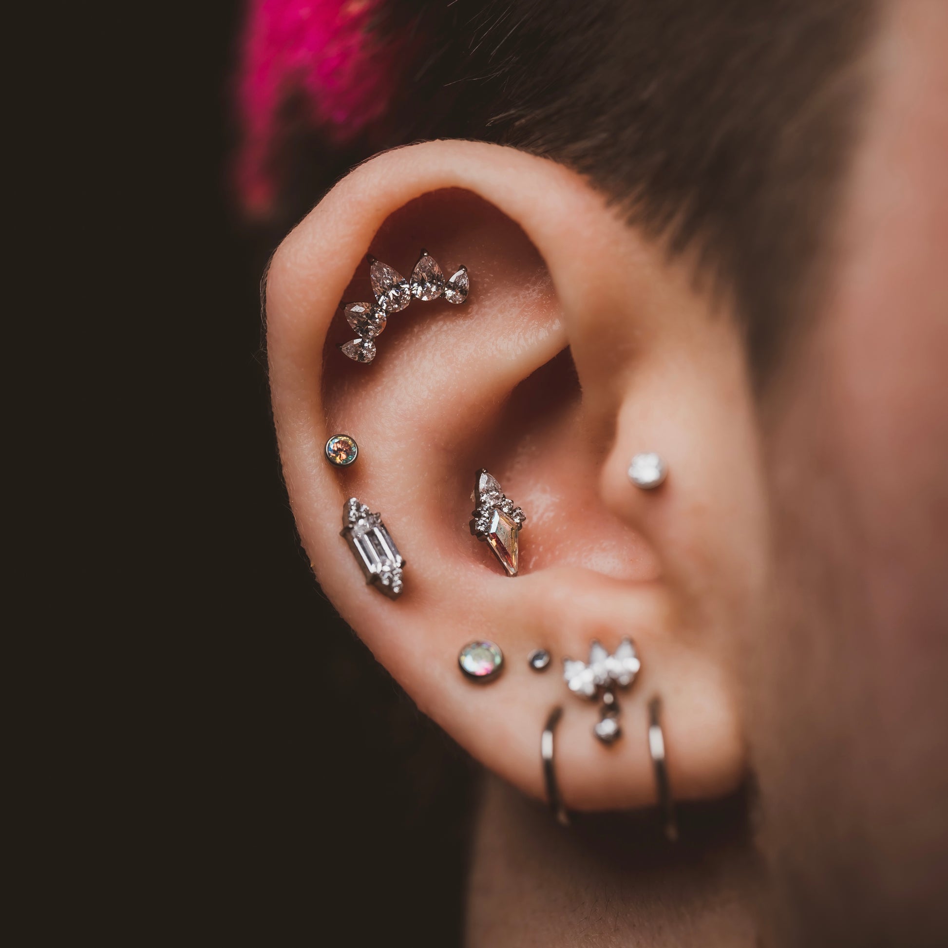 Please note that Flatbacks are custom fit to your ear. When purchasing, be sure to select the appropriate size for the piercing where you intend to wear the jewelry. If you're unsure of your size, we recommend visiting our studio, where we can help you find the right fit, or measure the thickness of your ear in the piercing area. Also, if you purchase only the head, it will not include the post—only the threadless head is provided.