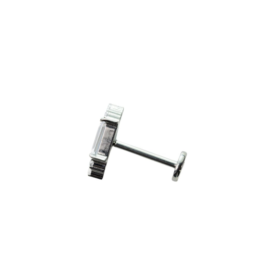 "Art Deco" Titanium Threadless Flatback Stud with Cubic Zirconia Accents