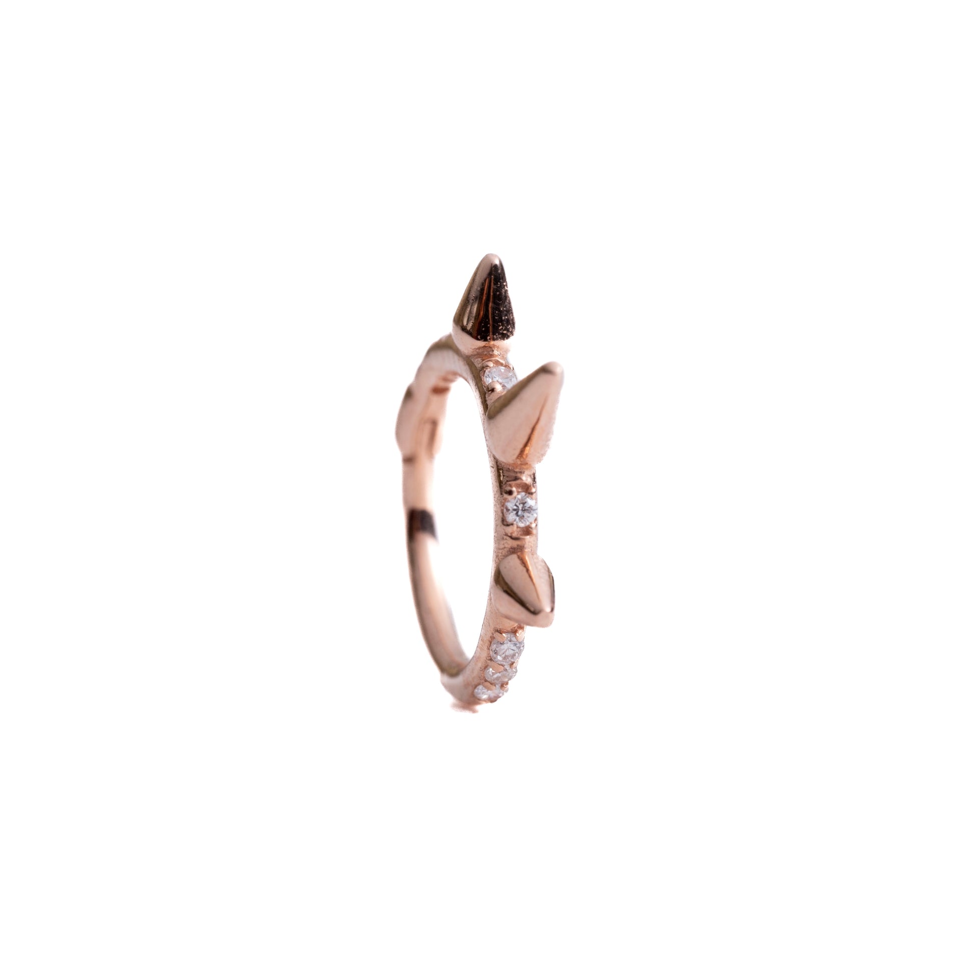 Introducing Briar - the epitome of opulence and edge. This single earring boasts a 14k gold construction with a delicate 1MM diamond detail, finished with a spiked 8mm hoop. Elevate your style with this luxurious statement piece.