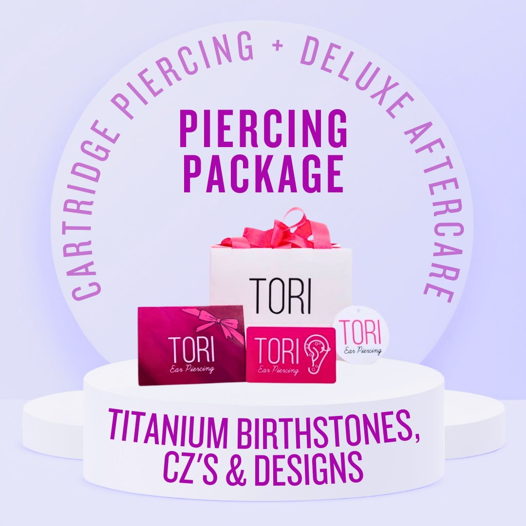 Treat yourself or someone special to a luxury piercing experience with this all-inclusive bundle! This package includes a Cartridge Piercing with Titanium Studs, available in various styles. Choose from: