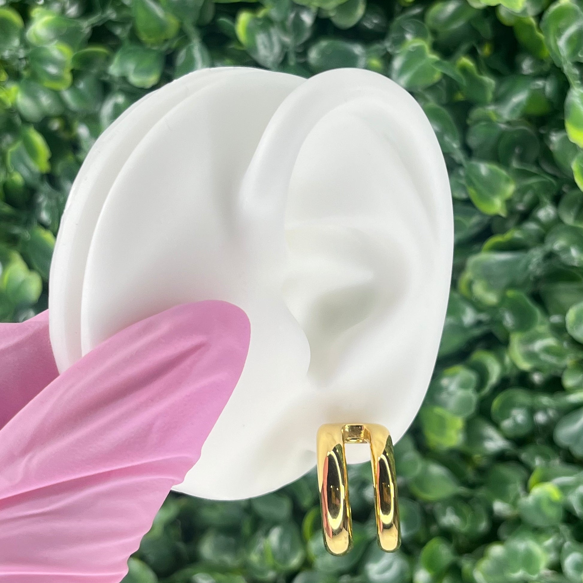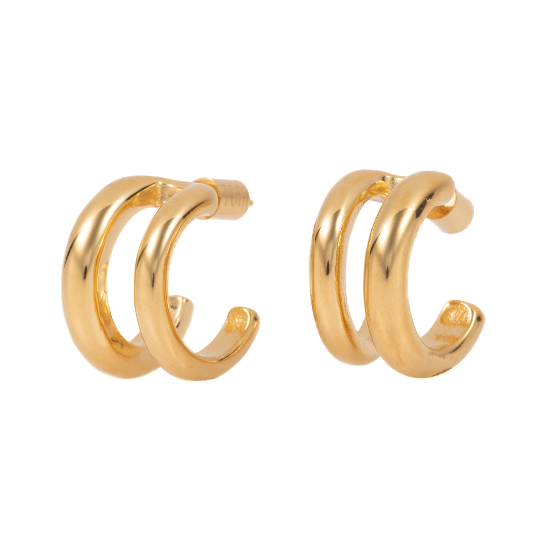 Expertly crafted, the Danielle earrings feature a unique double half hoop stud design. Combining durability and elegance, these earrings offer a sophisticated touch to any outfit. Elevate your style with these versatile and timeless studs.