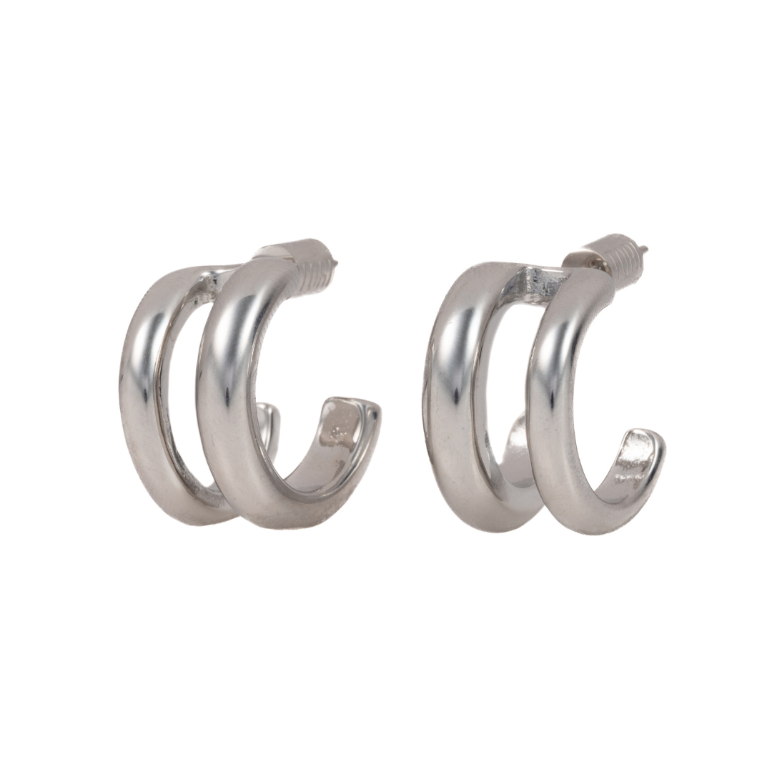 Expertly crafted, the Danielle earrings feature a unique double half hoop stud design. Combining durability and elegance, these earrings offer a sophisticated touch to any outfit. Elevate your style with these versatile and timeless studs.