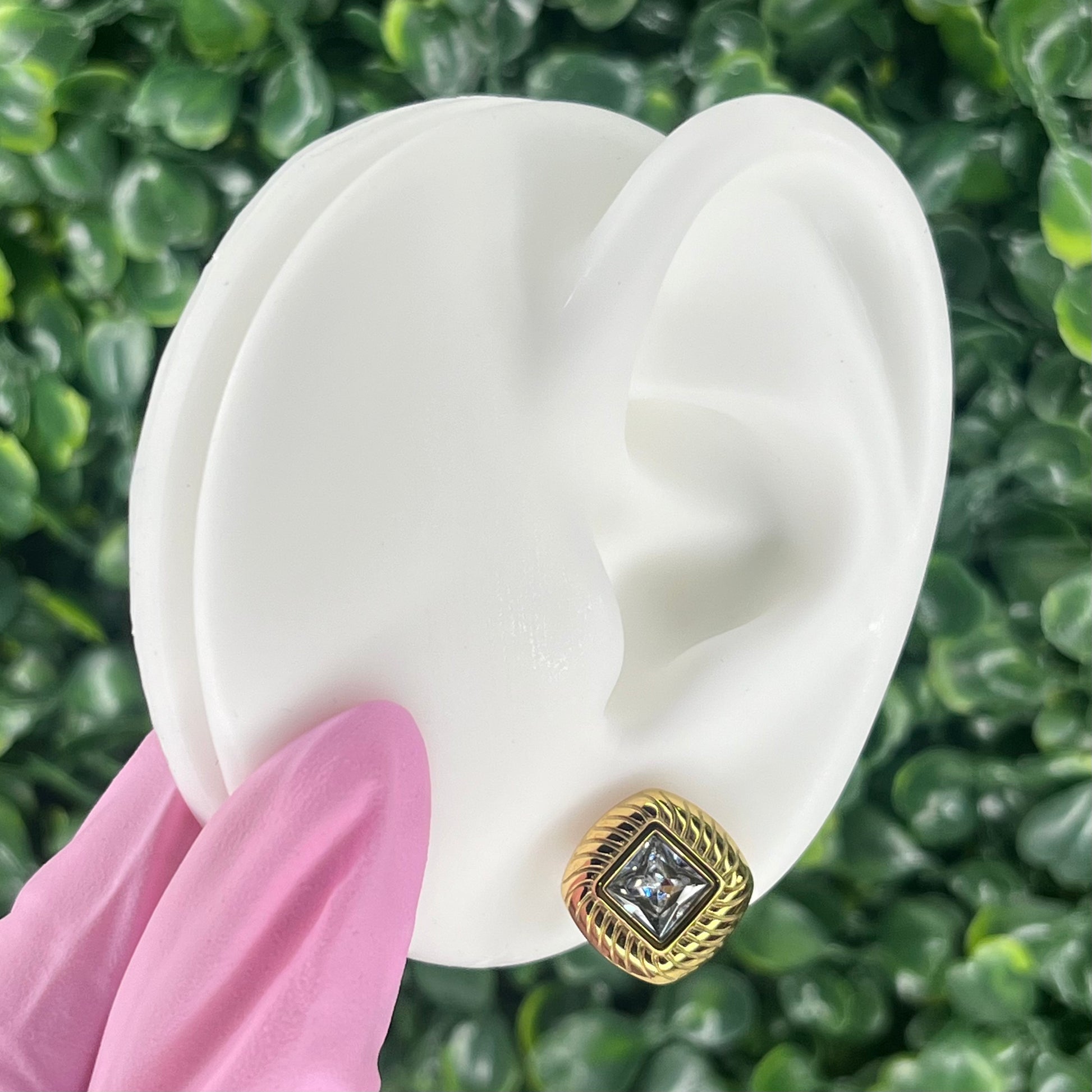 Introducing Diana, the braided border princess cut Zirconia studs that add a touch of elegance to any outfit. Upgrade your style game with Diana today!