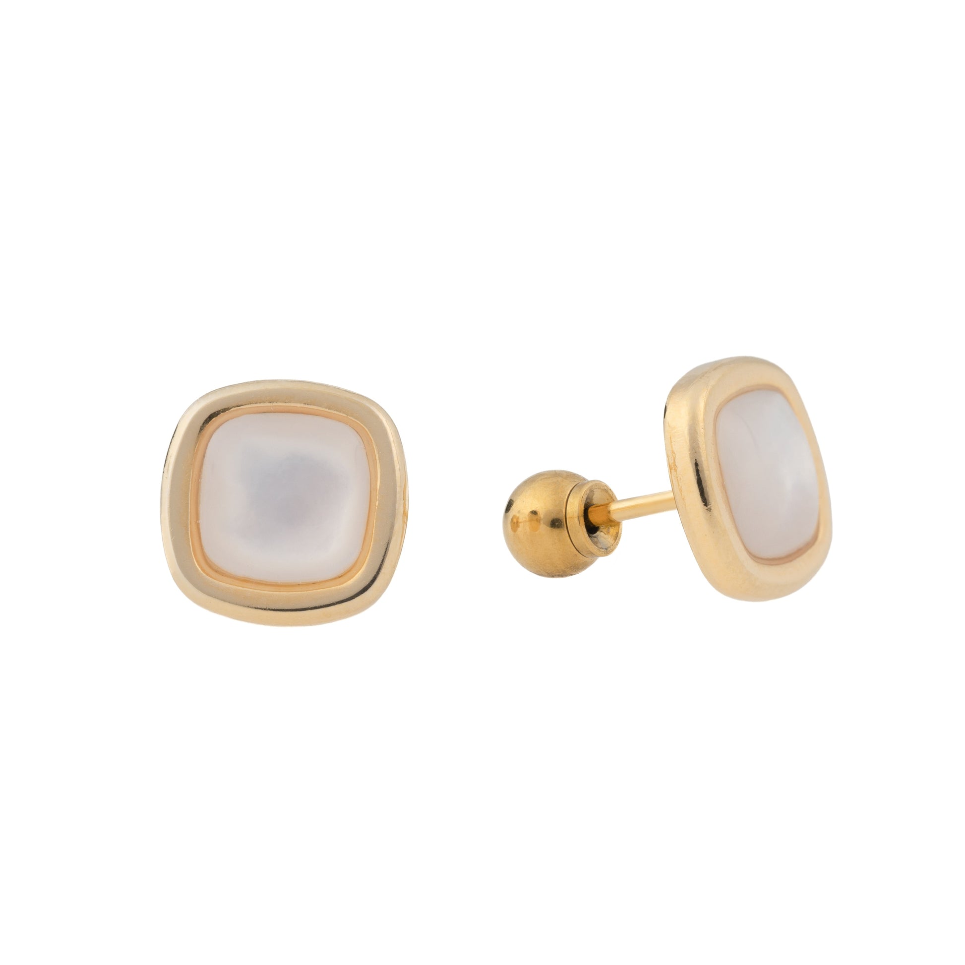 The Radiance earring features an 8mm square iridescent stone, bordered by a sleek gold-plated outline. Crafted from hypoallergenic, non-tarnish gold-plated stainless steel, this elegant stud is finished with a ball-shaped push back, offering a chic and timeless accessory for any occasion.