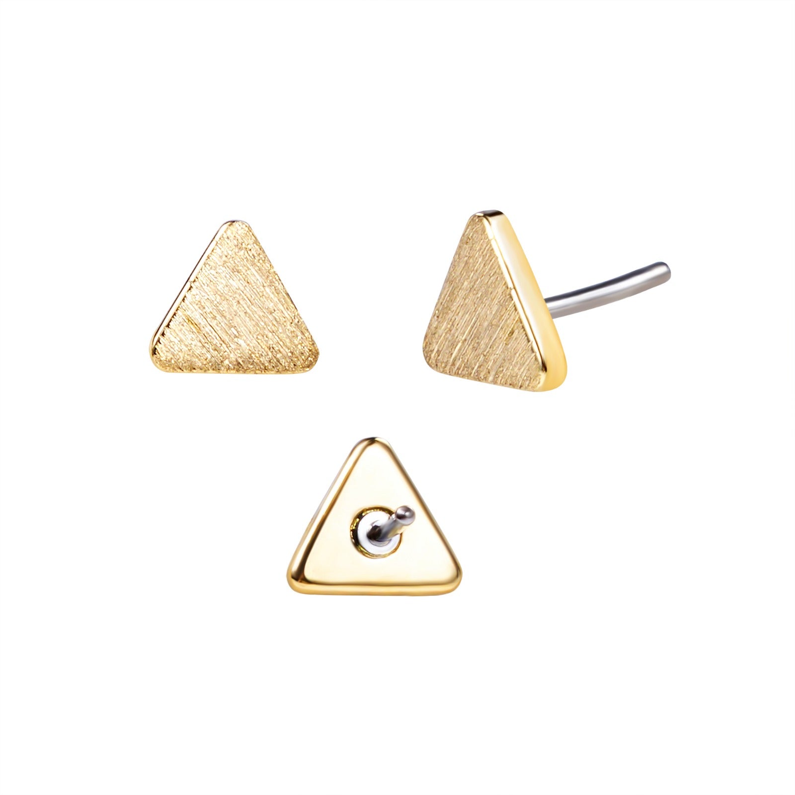 "Eternal" 14k Gold Threadless Flatback Textured Triangle Stud