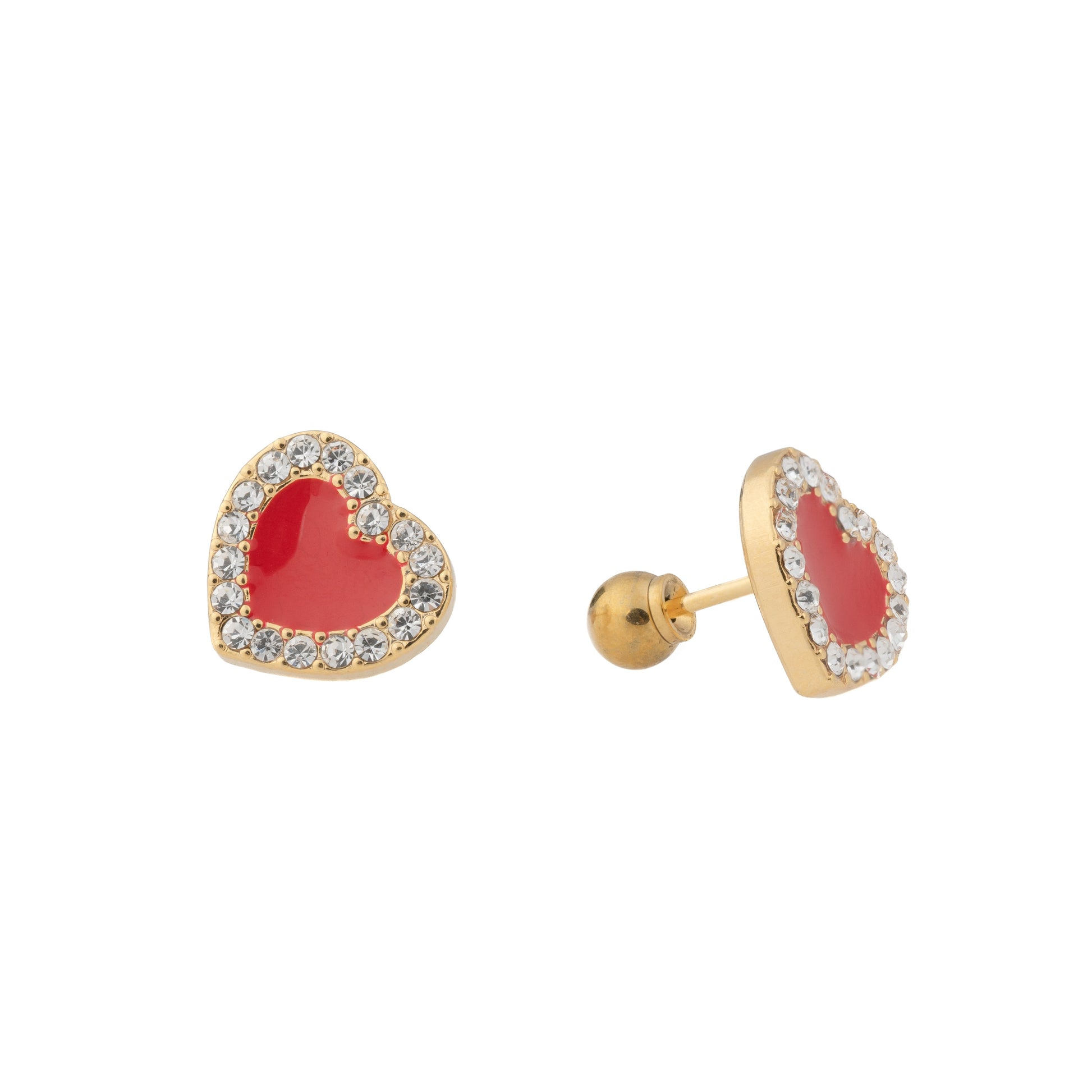 "Valentine" – Hypoallergenic Gold Plated Stainless Steel Enamel CZ Heart Stud