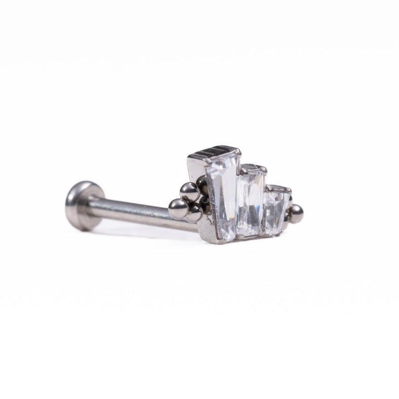 "Gatsby Glamour" Titanium Threadless Flatback Stud with Cubic Zirconia Baguettes and Titanium Ball Trinities