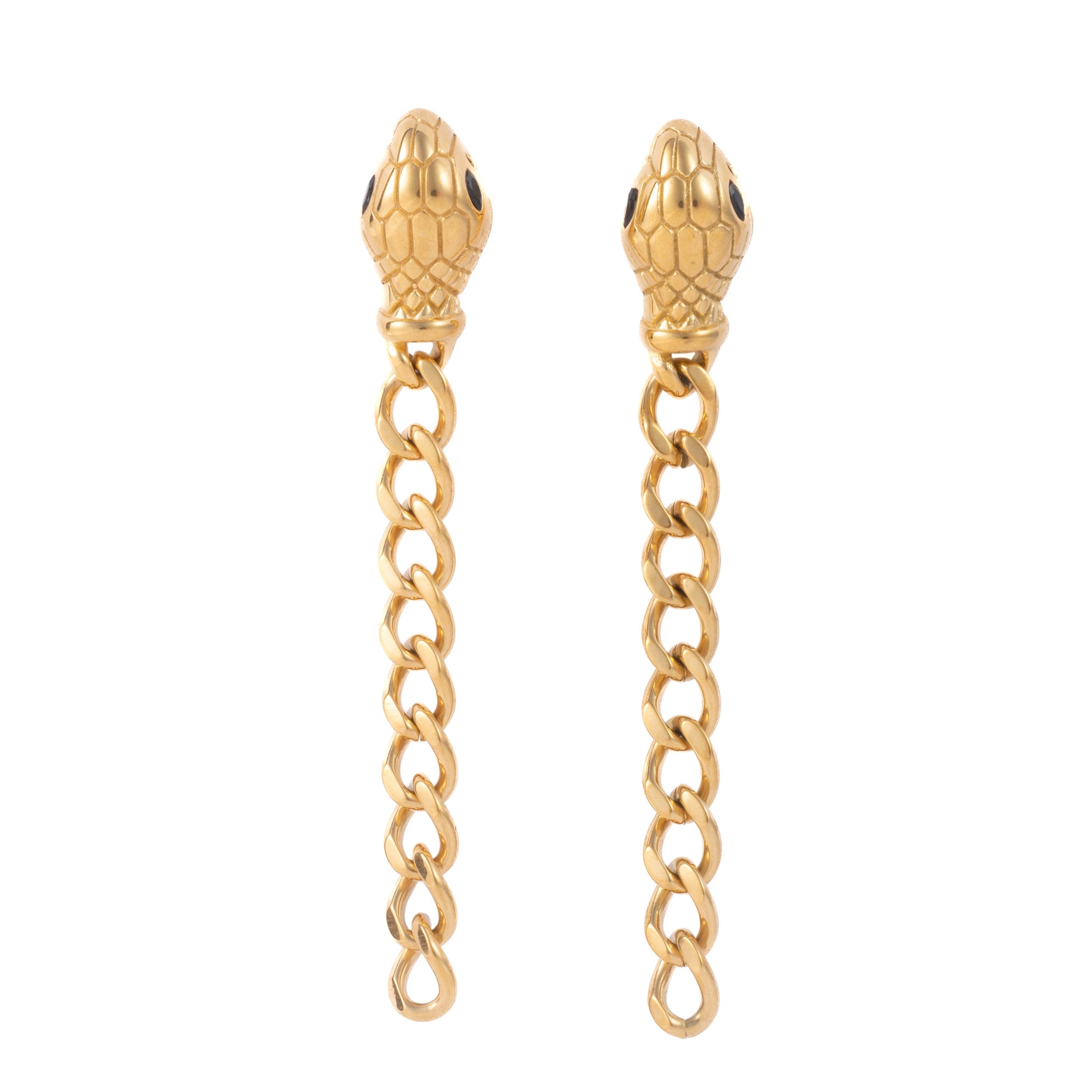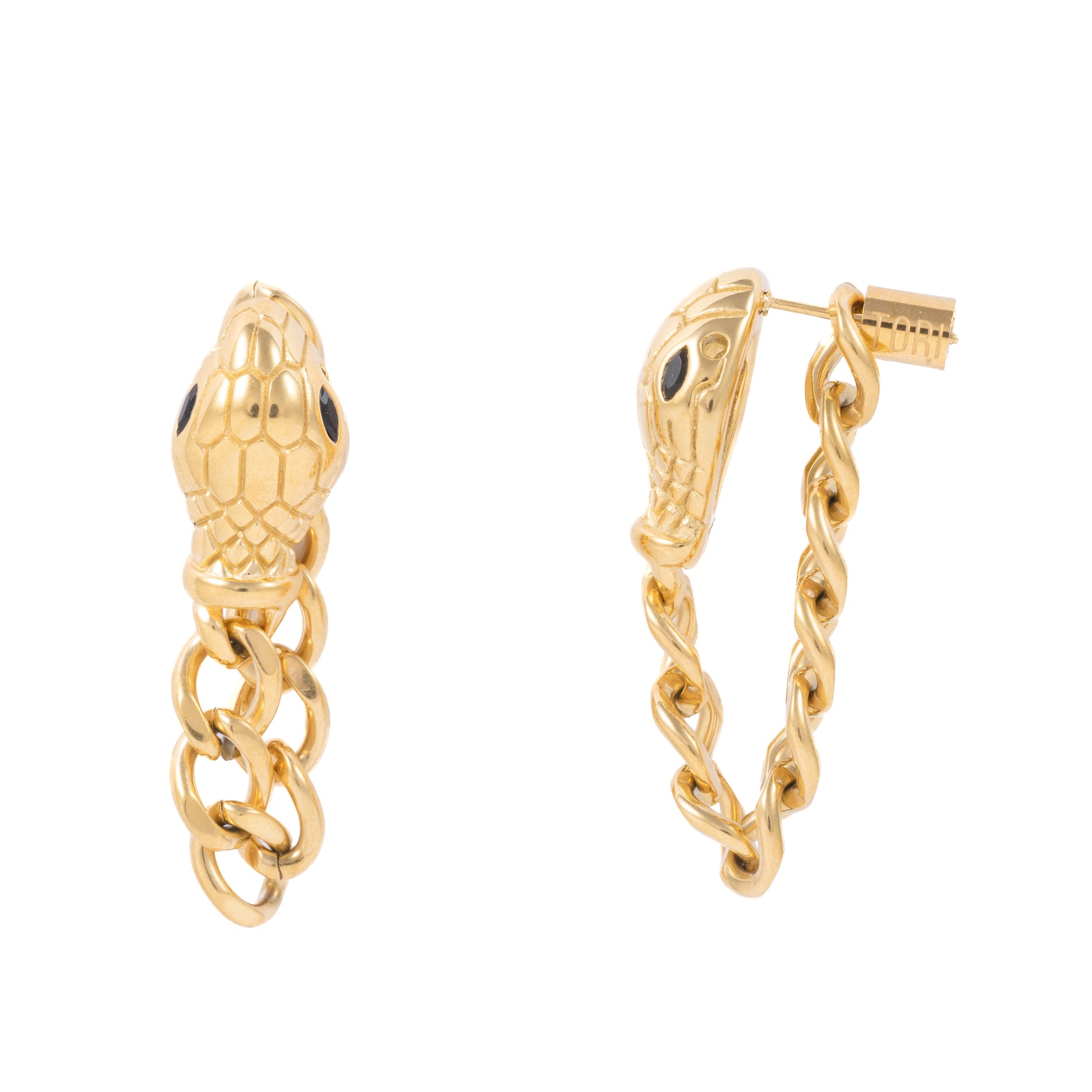 Get ready to add a little edge to your style with Lex! These Snake Head studs feature captivating CZ eyes and a dangling chain.