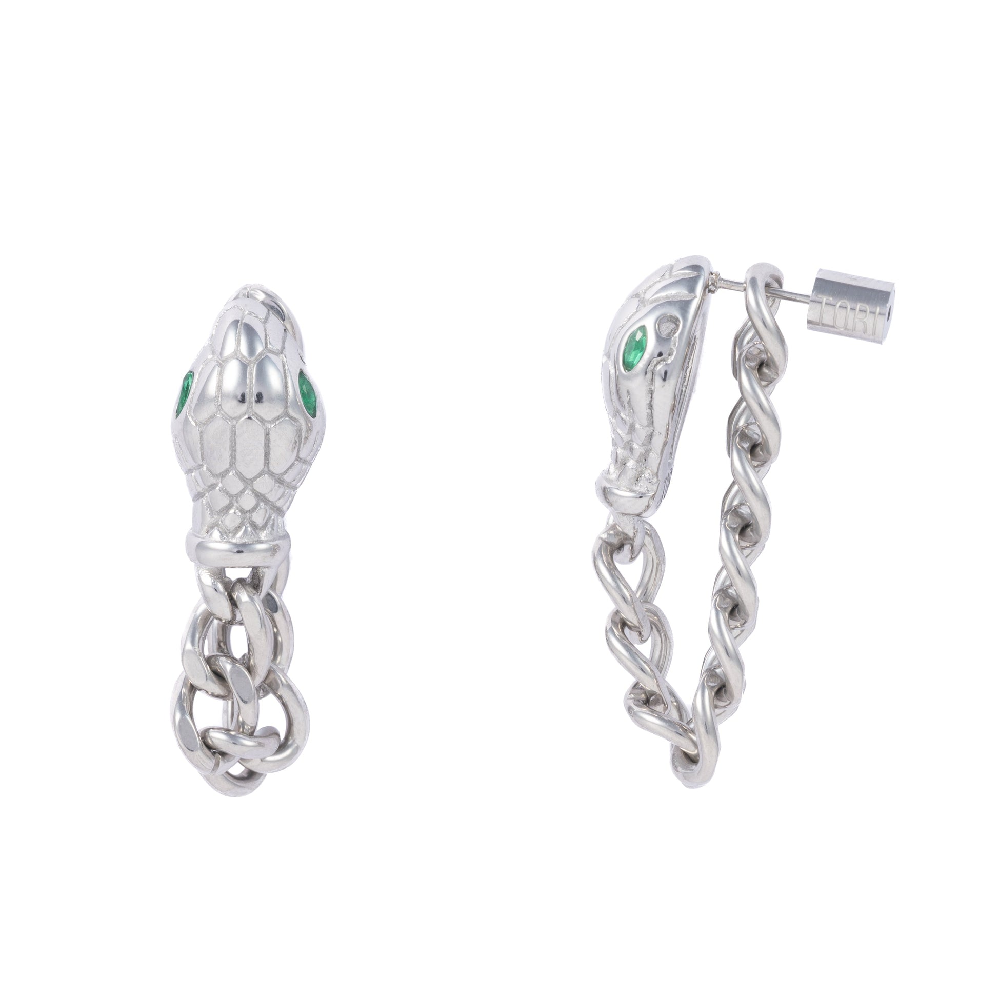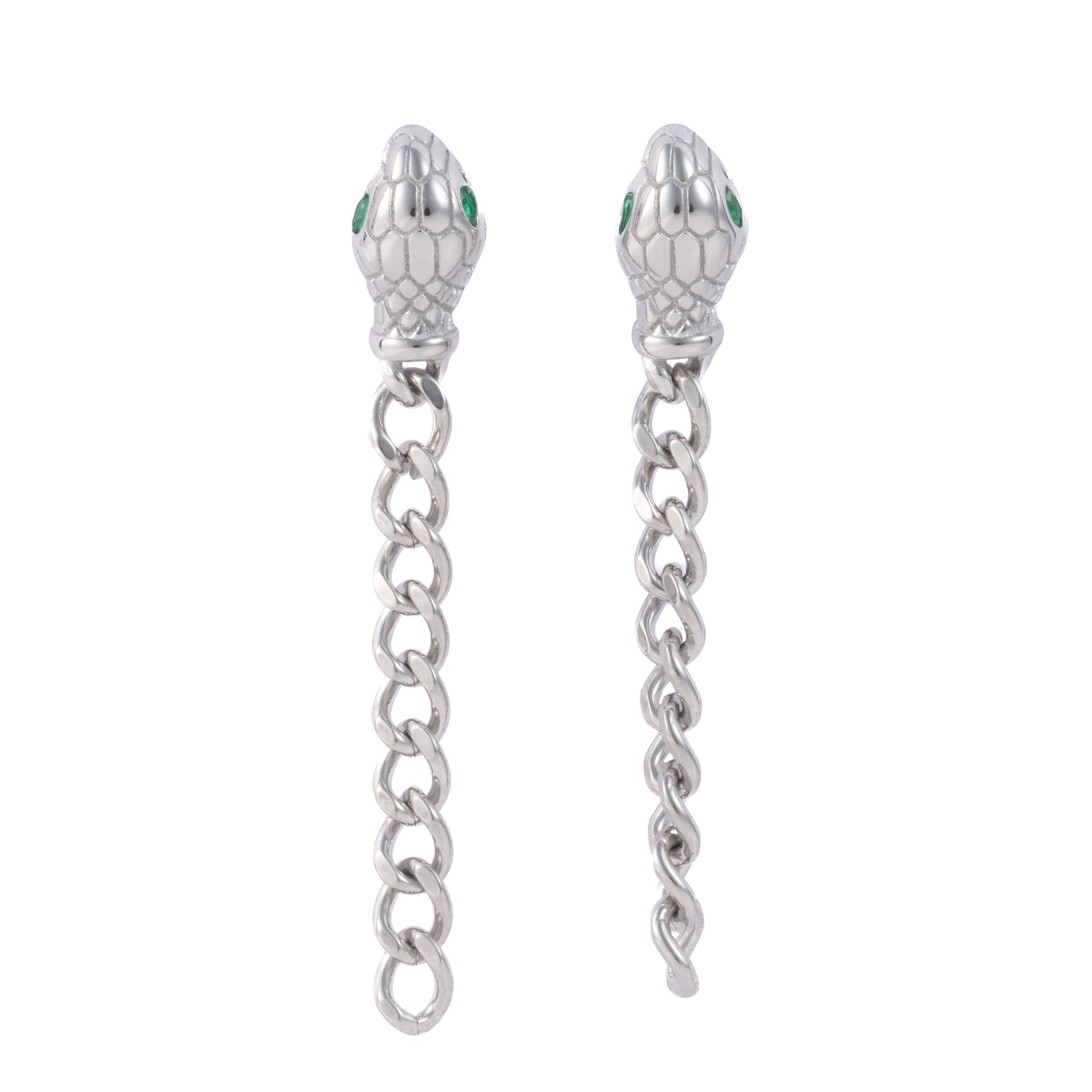 Get ready to add a little edge to your style with Lex! These Snake Head studs feature captivating CZ eyes and a dangling chain.