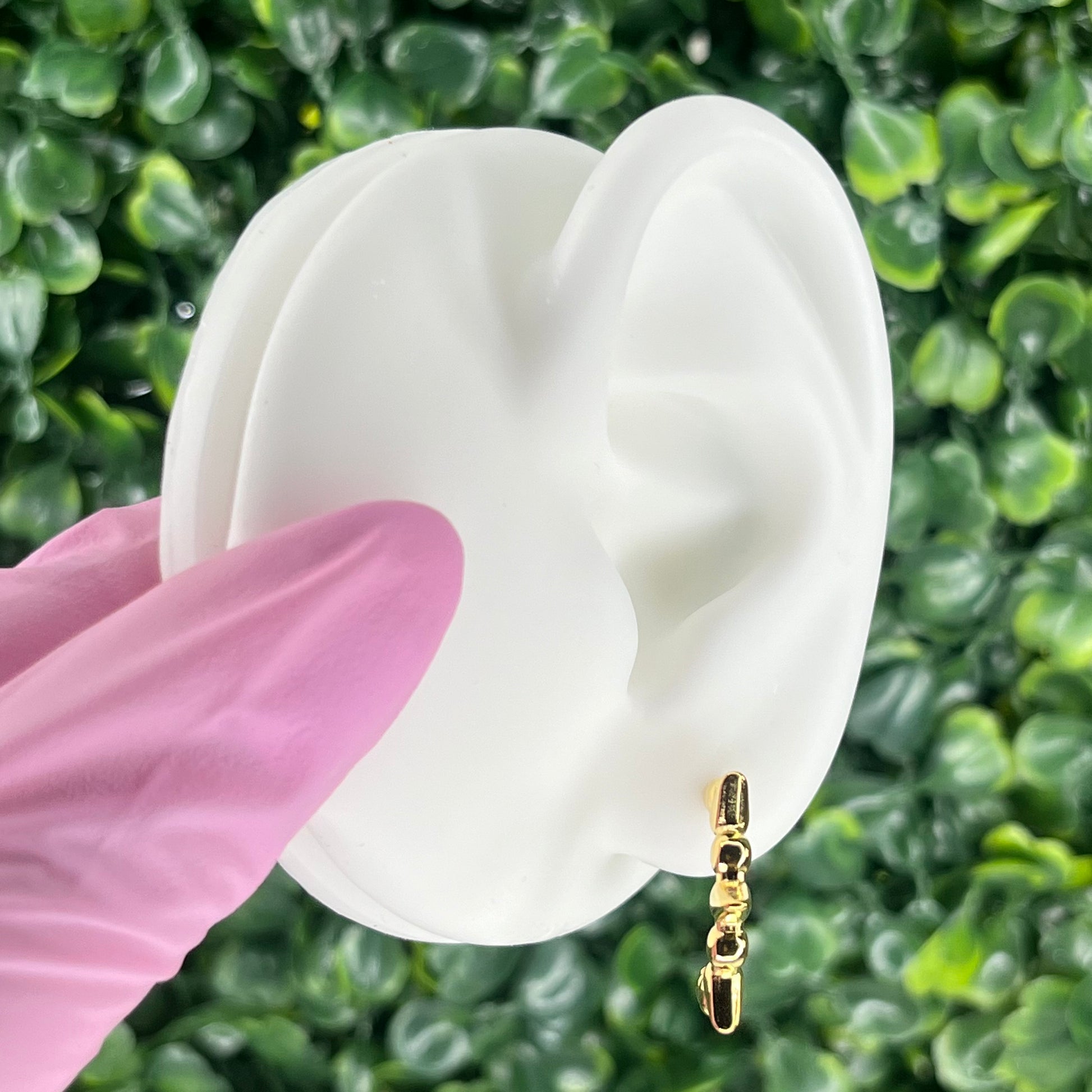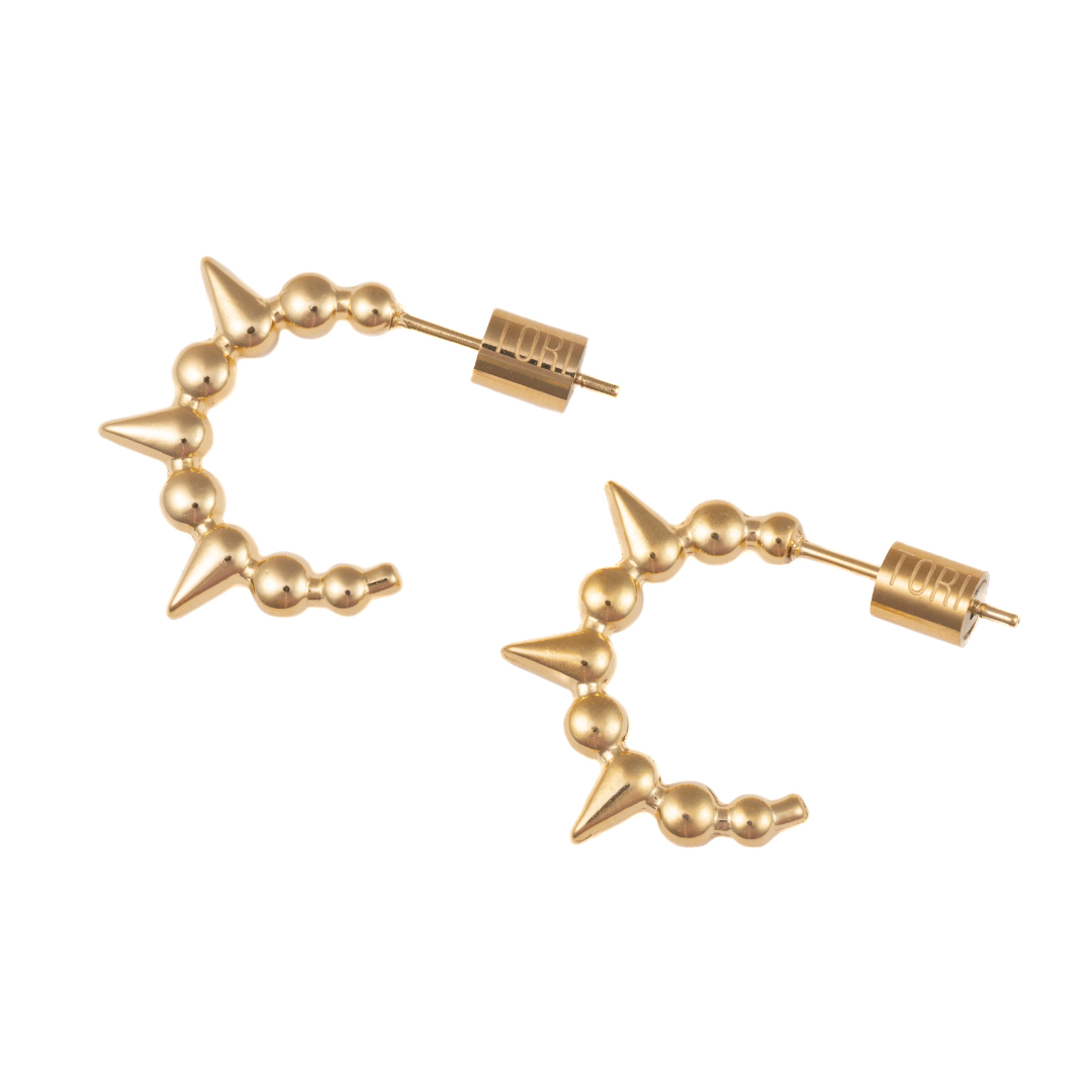 Add a touch of edgy elegance to your style with the Maxine earrings! These Tri Spike Beaded Half Hoop earrings feature a unique design. Perfect for the fashion-forward individual.