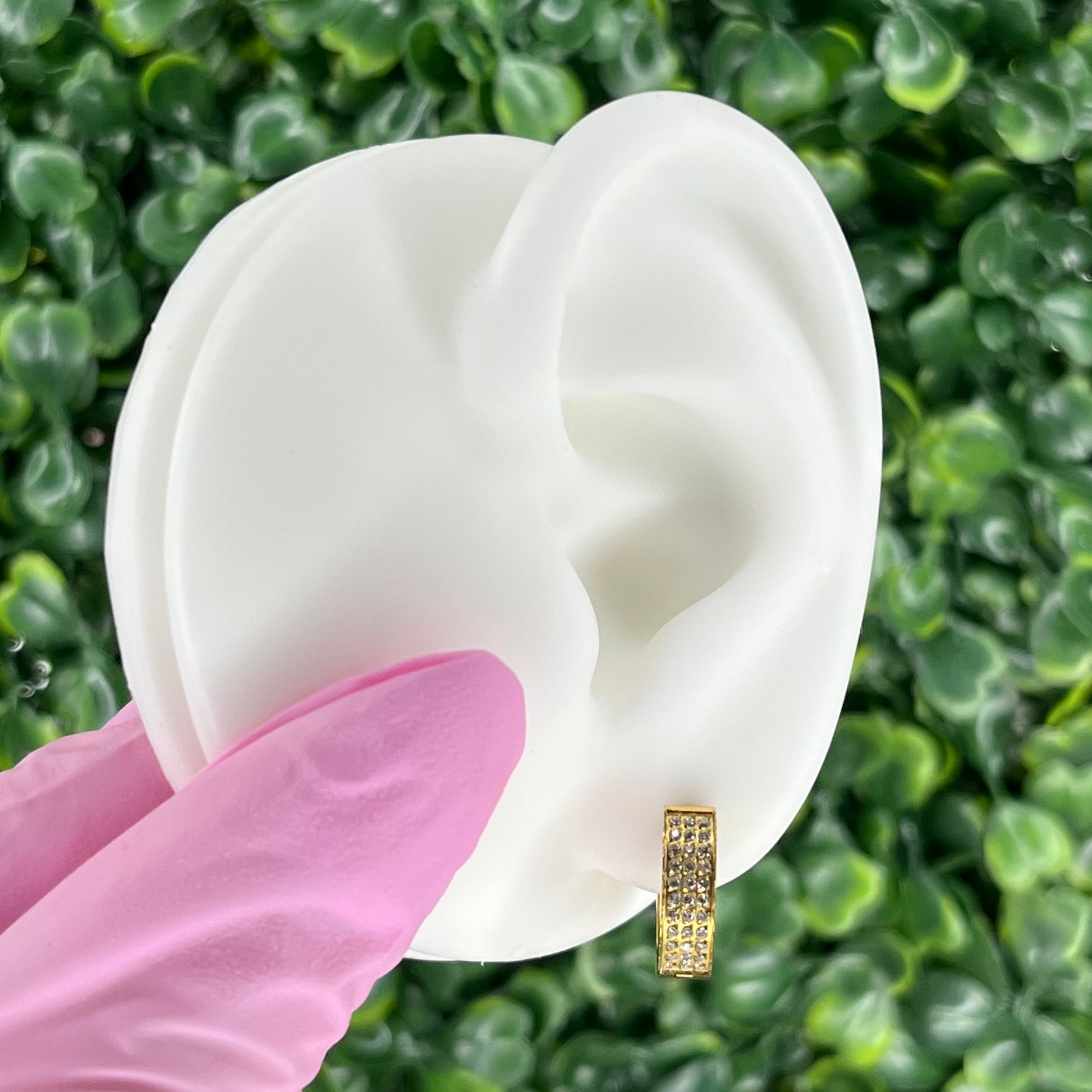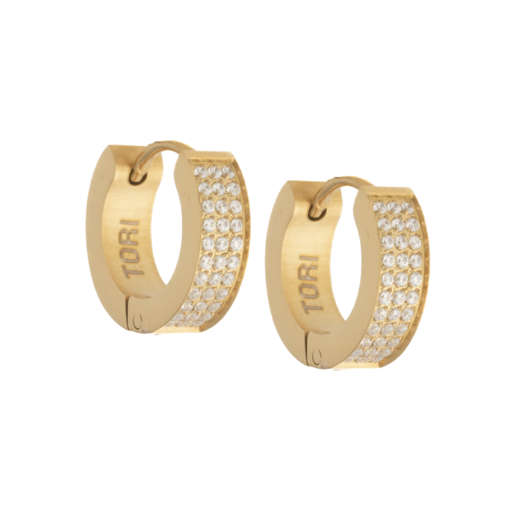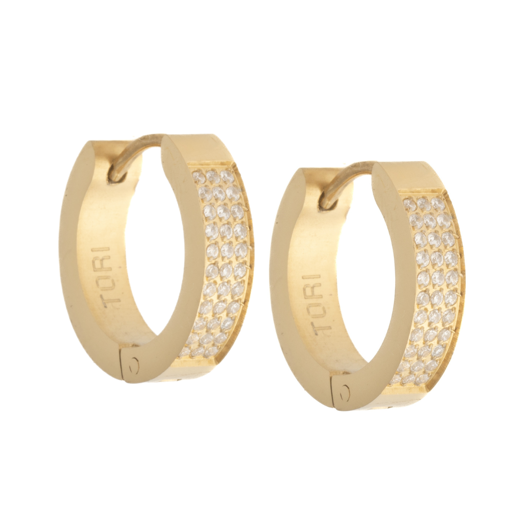 Get ready to sparkle and shine with Maria! These three row cubic zirconia hoops add just the right amount of bling to any outfit. Perfect for any occasion! (Now that's what I call hoop-tastic!)