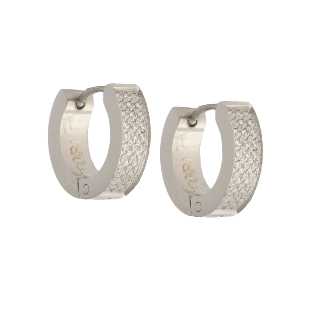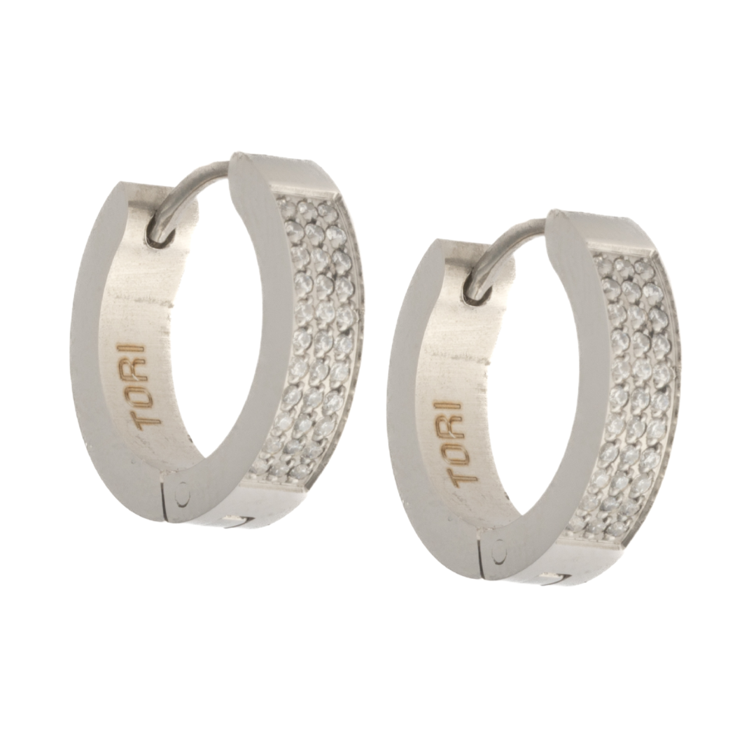 Get ready to sparkle and shine with Maria! These three row cubic zirconia hoops add just the right amount of bling to any outfit. Perfect for any occasion! (Now that's what I call hoop-tastic!)