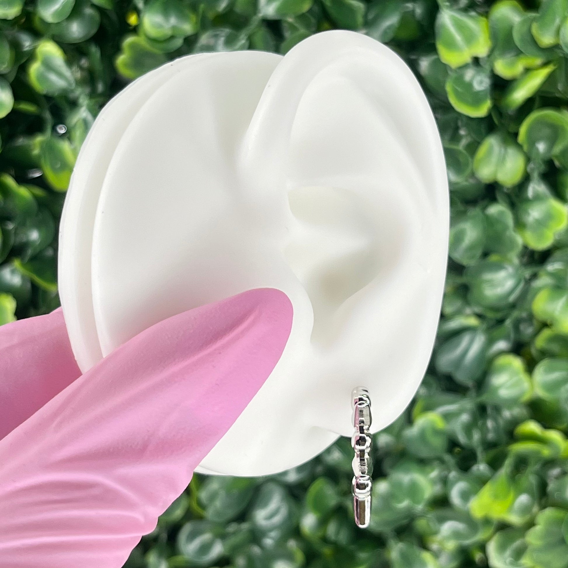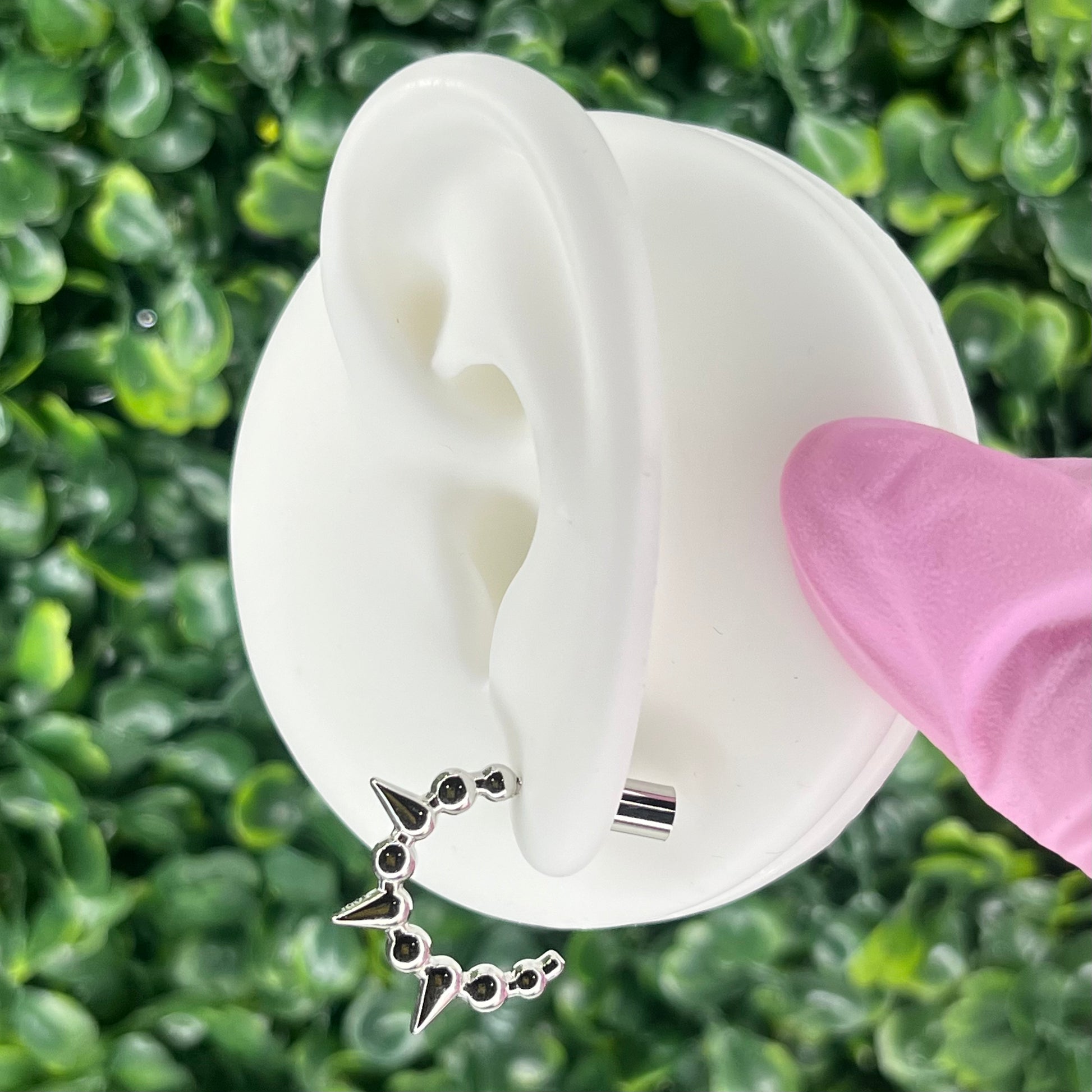 Add a touch of edgy elegance to your style with the Maxine earrings! These Tri Spike Beaded Half Hoop earrings feature a unique design. Perfect for the fashion-forward individual.