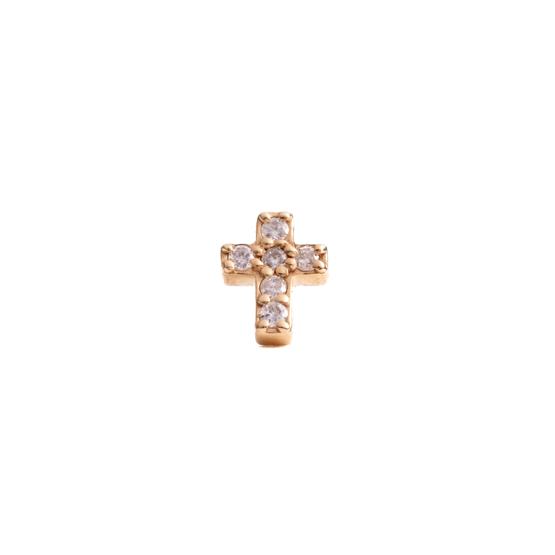 Indulge in luxury with our Mercy Single Earring. Crafted from 14k yellow gold, this single earring features a stunning 1mm diamond cluster cross, adding a touch of elegance and sophistication. The threaded flatback design is perfect for effortless, yet chic, everyday wear. Elevate your style with Mercy.