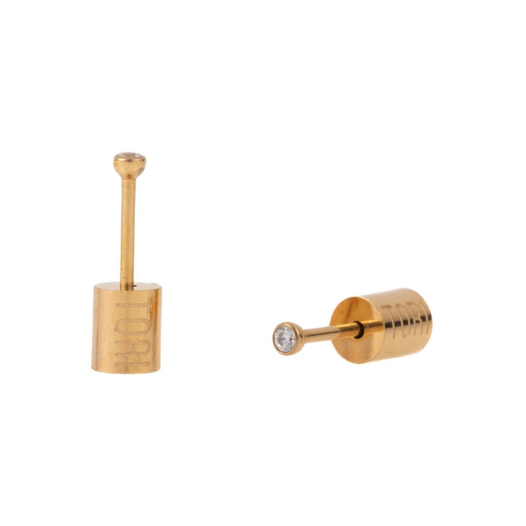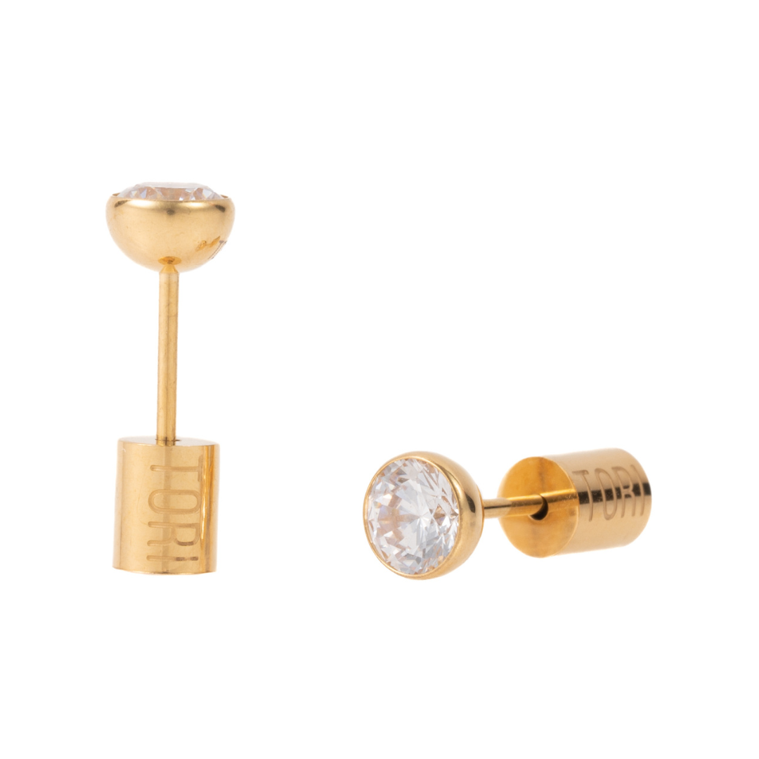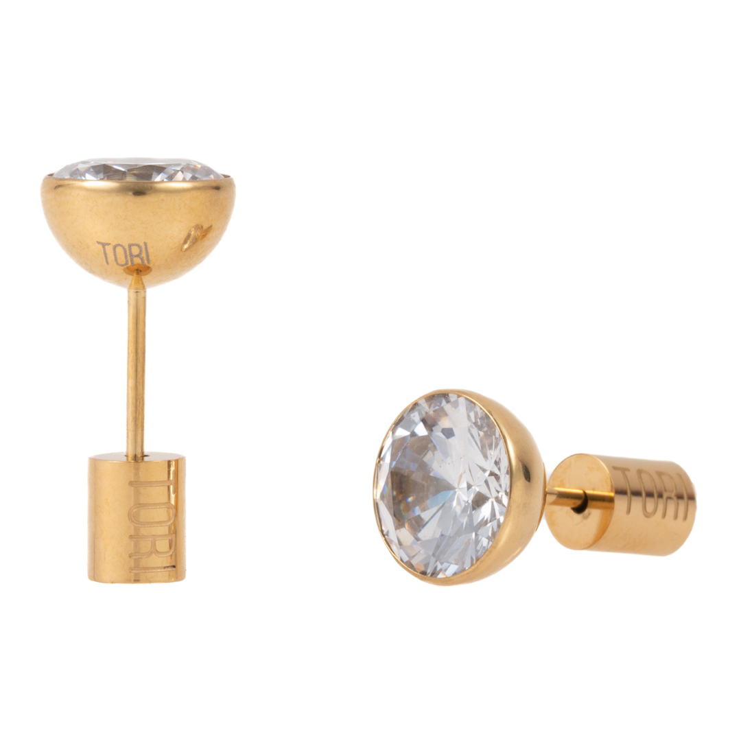 Add a touch of elegance and edge with Mikaela Studs. These clear CZ studs come in a variety of sizes and can be worn in either plain white stainless or yellow gold plated. Get ready to turn heads with this bold and versatile pair.