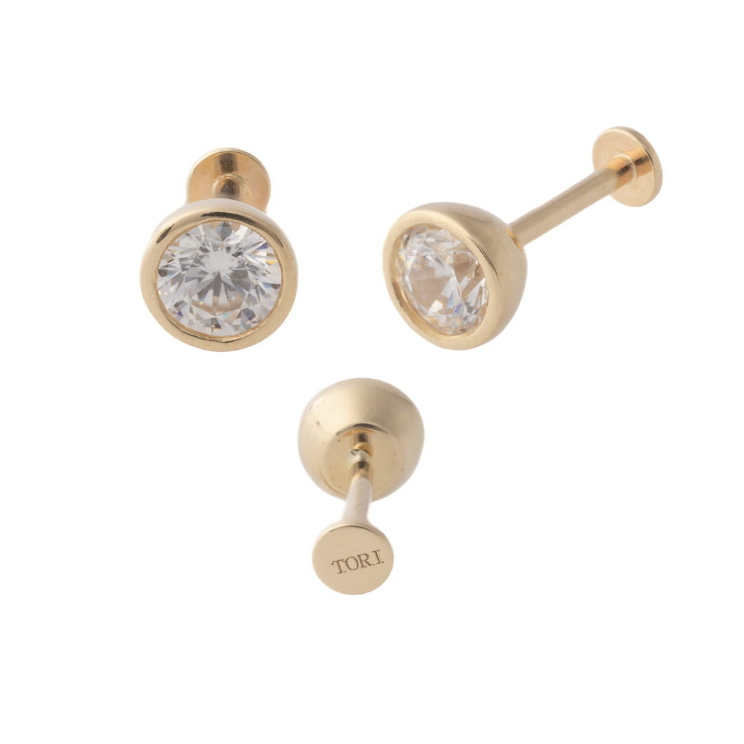 Minimalist Bezel in Yellow Gold – Threadless Flatback Stud
