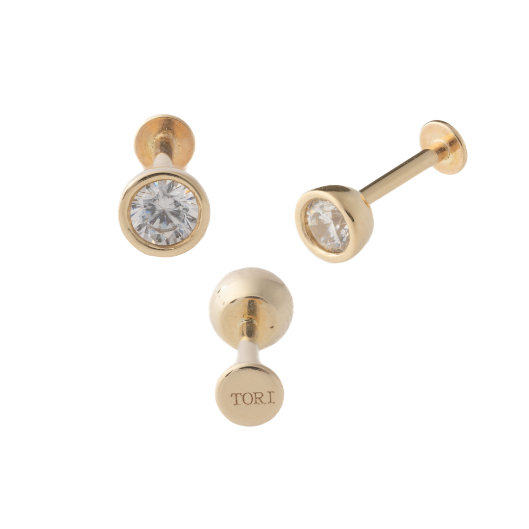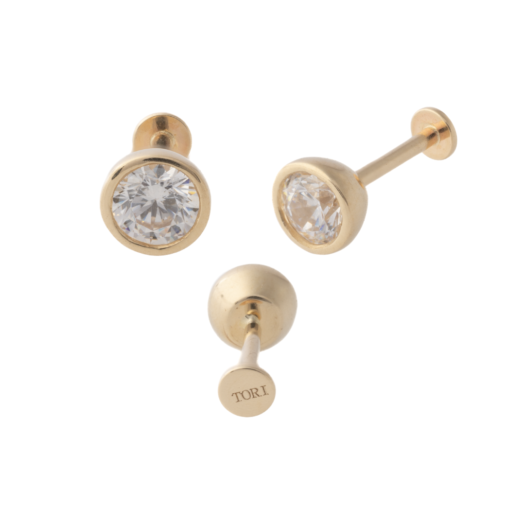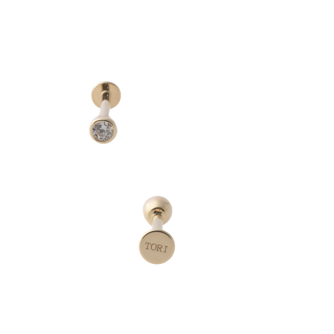 "Minimalist Bezel" 14k Gold 18G Threadless Flatback with Cubic Zirconia Bezel