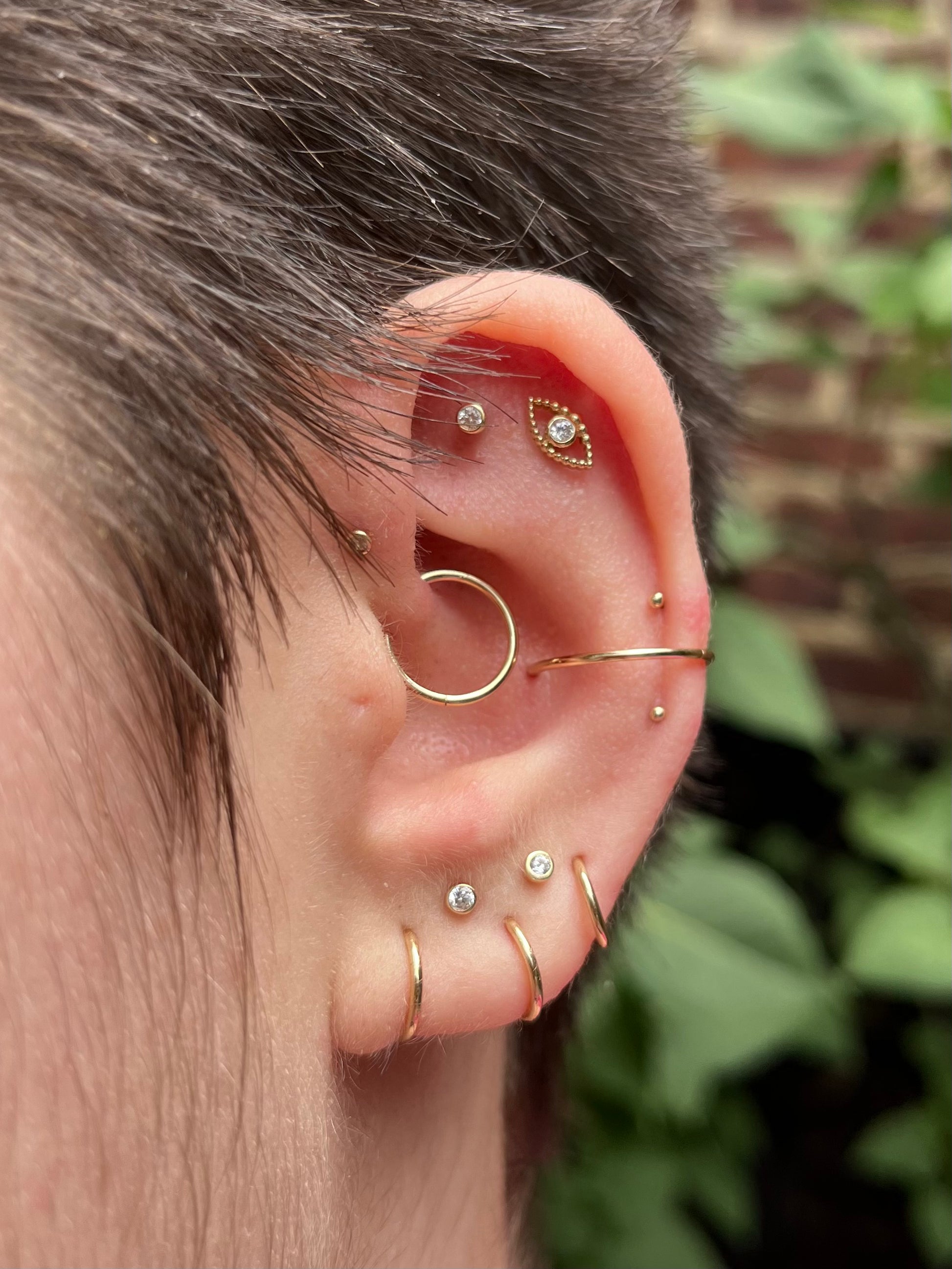 Please note that Flatbacks are custom fit to your ear. When purchasing, be sure to select the appropriate size for the piercing where you intend to wear the jewelry. If you're unsure of your size, we recommend visiting our studio, where we can help you find the right fit, or measure the thickness of your ear in the piercing area.