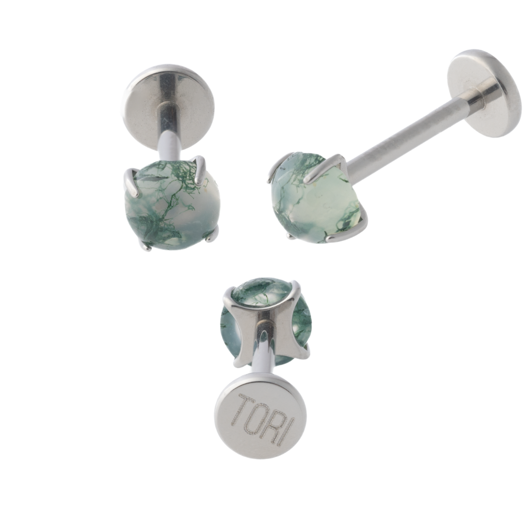 "Moss Agate" Titanium 18G Threadless Flatback with 4mm Moss Agate Stone
