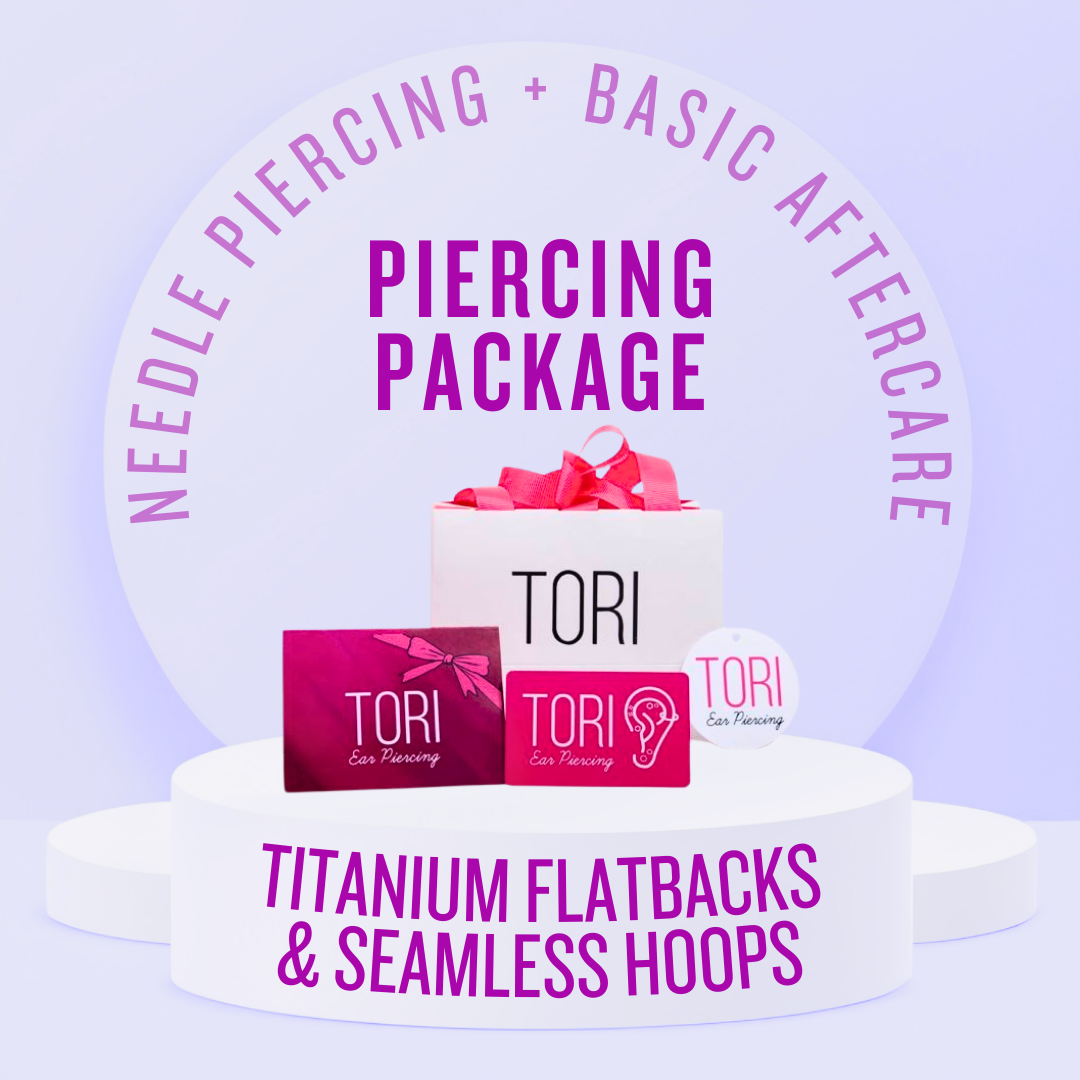 Treat yourself or someone special to a luxury piercing experience with this all-inclusive bundle! This package includes a needle piercing with your choice of titanium threadless flatback studs or seamless hoops. Pricing varies based on the jewelry selected, with three pricing tiers:
