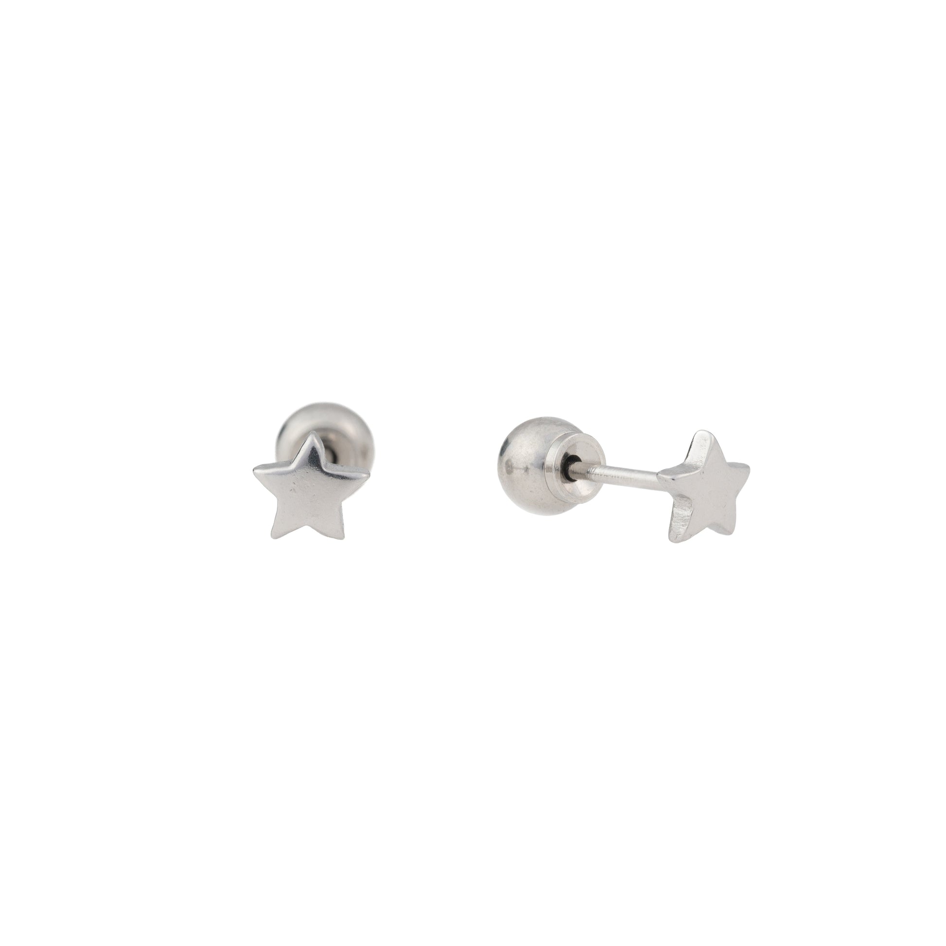 The Celestial earring features a 5mm solid star design, crafted from hypoallergenic, non-tarnish stainless steel. With its sleek and modern appeal, this stud is finished with a ball-shaped push back, making it a versatile and sparkling addition to any collection.