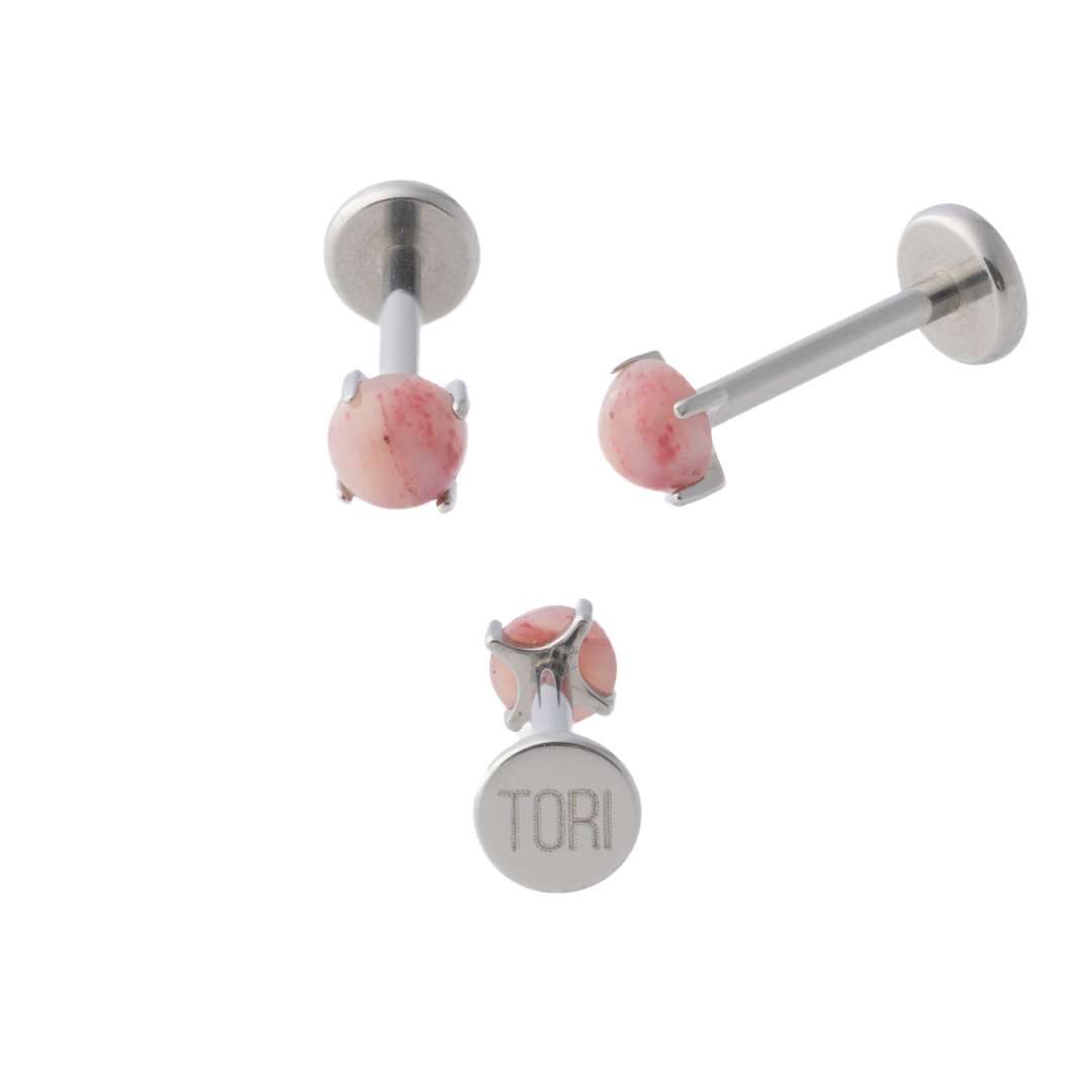 "Rhodochrosite" Titanium 18G Threadless Flatback with 3mm Rhodochrosite Stone