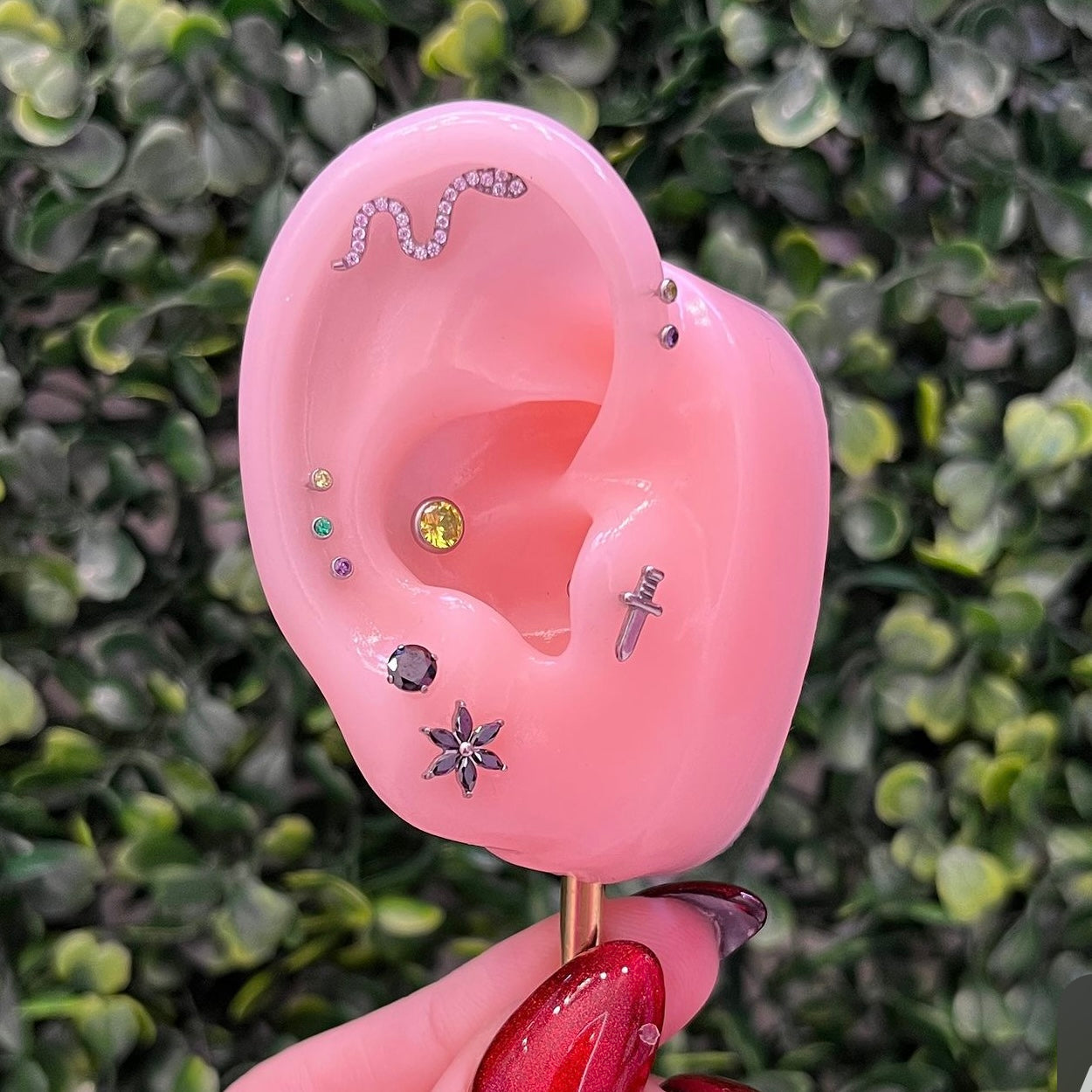 Please note that Flatbacks are custom fit to your ear. When purchasing, be sure to select the appropriate size for the piercing where you intend to wear the jewelry. If you're unsure of your size, we recommend visiting our studio, where we can help you find the right fit, or measure the thickness of your ear in the piercing area. Also, if you purchase only the head, it will not include the post—only the threadless head is provided.