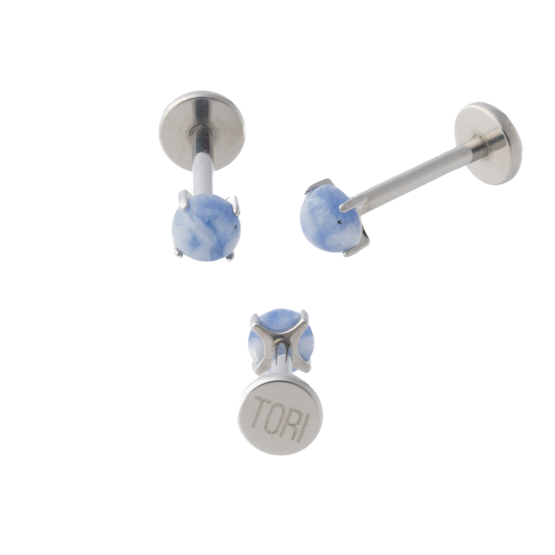 "Solidite" Titanium 18G Threadless Flatback with 3mm Solidite Stone
