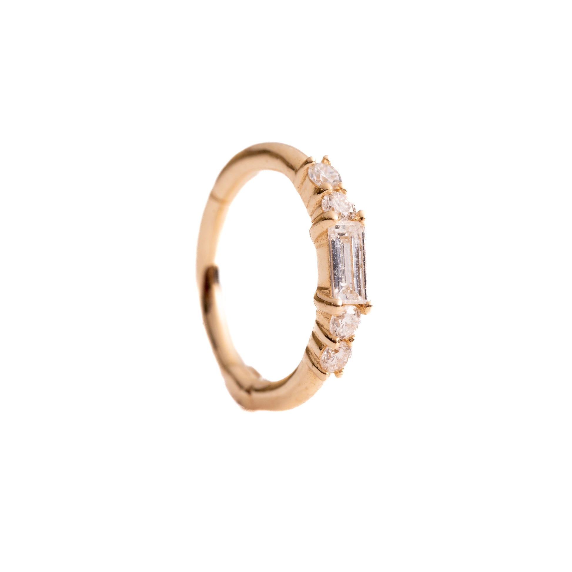 Indulge in the glamorous style of our 14k Baguette and Round cut diamond 8mm Hoop earring. Exquisitely crafted with precision, this single earring will add a touch of elegance and sophistication to any outfit. Elevate your look with the sparkle of diamonds and indulge in luxurious style.
