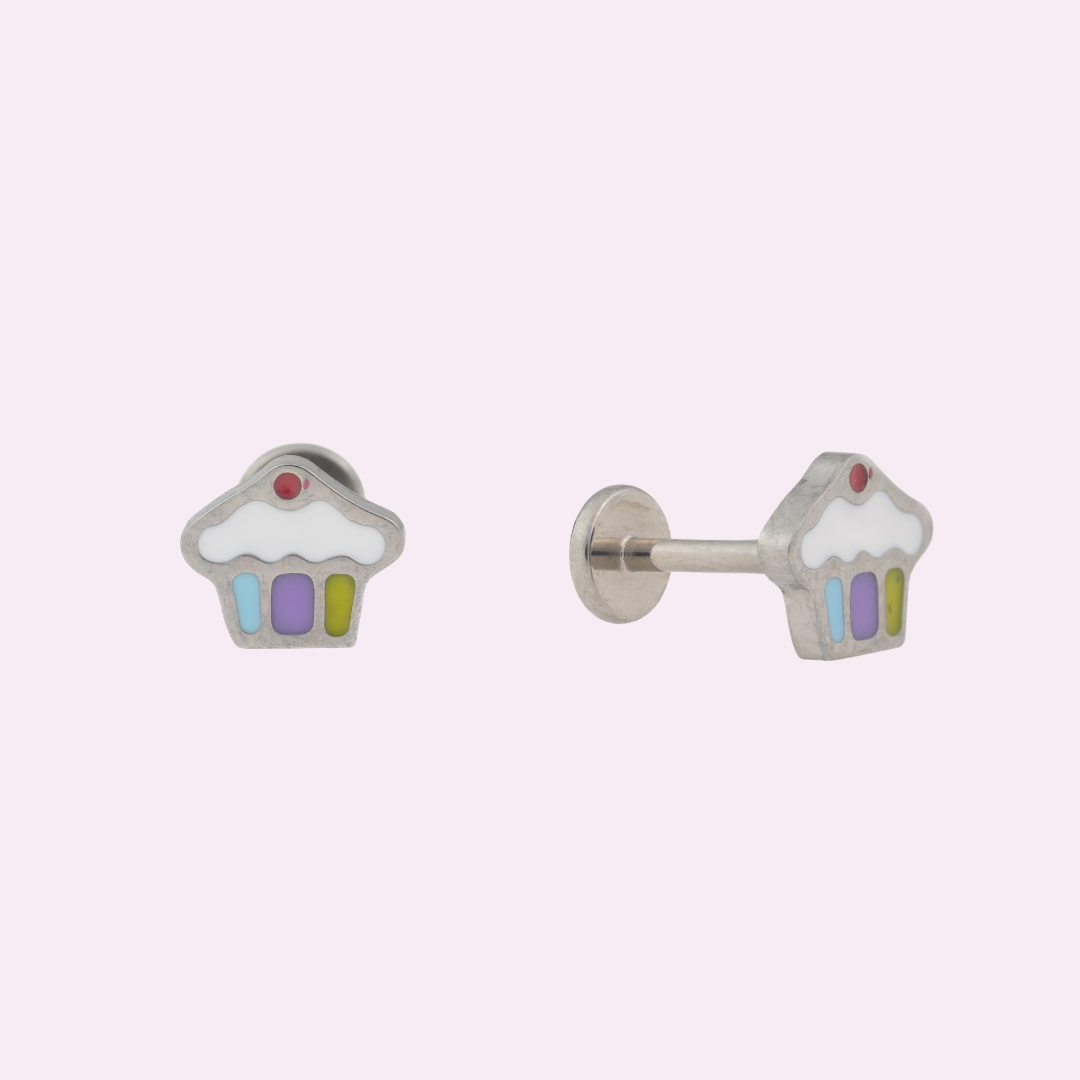 Cupcake Design With Red, White, Blue, Purple & Yellow Enamel Accents