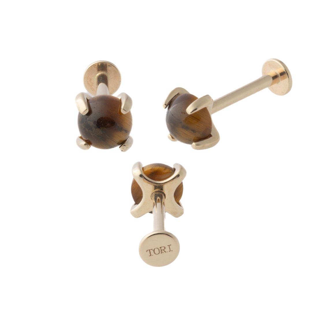 "Tiger Eye" 14k Gold 18G Threadless Flatback with 4mm Tiger Eye Stone