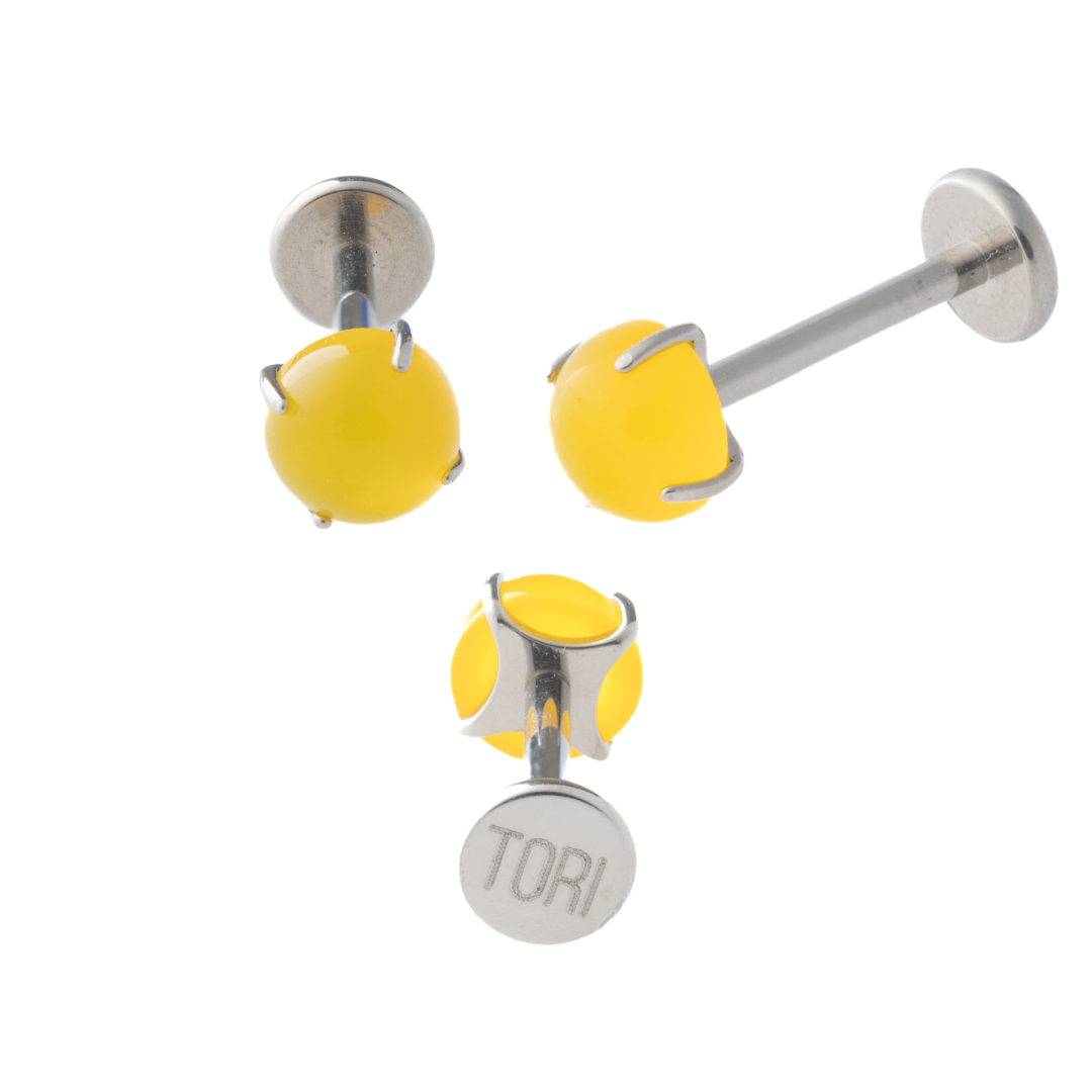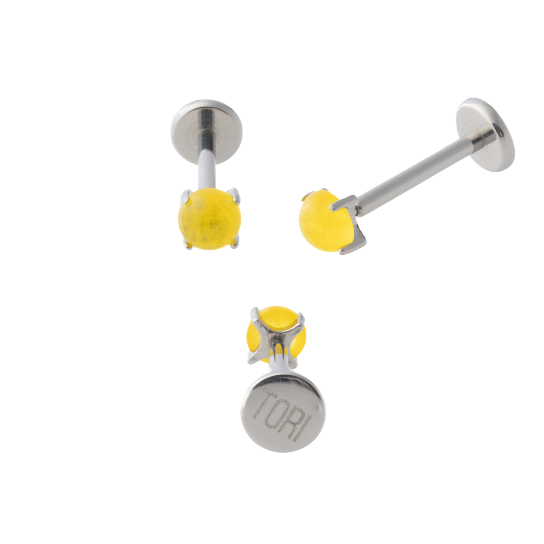"Yellow Agate" Titanium 18G Threadless Flatback with 3mm or 4mm Yellow Agate Stone