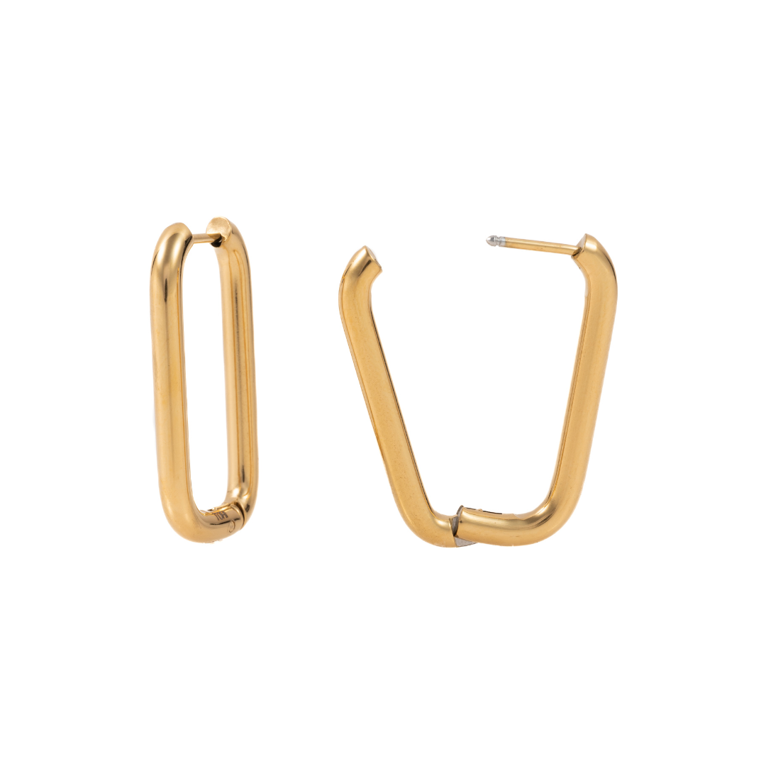 Introducing Zoé: the plain rectangular hoop earring. These hoops will elevate any outfit with a touch of sleek elegance. Perfect for everyday wear or special occasions. Upgrade your jewelry game with Zoé!